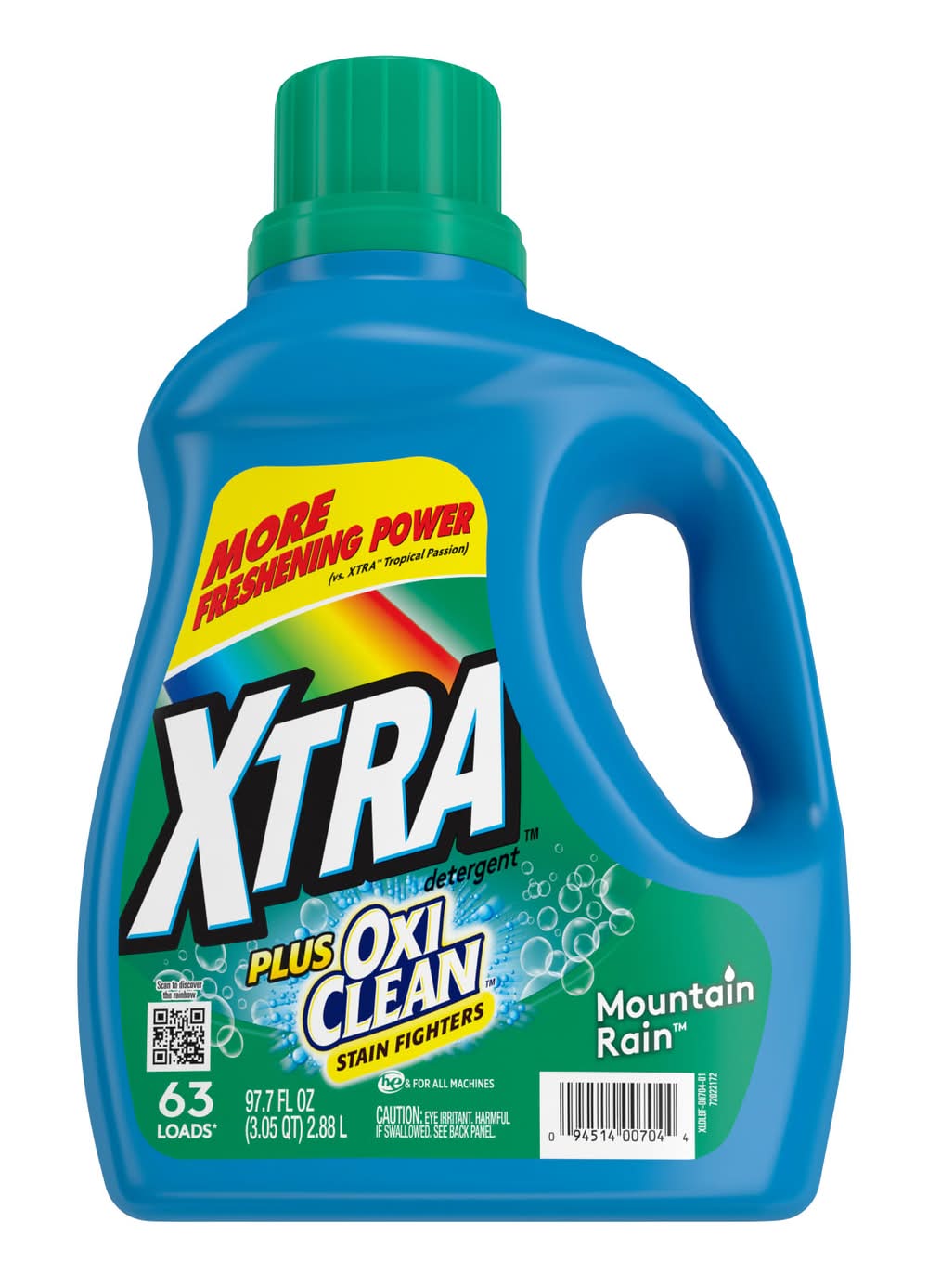 XTRA provides reliable performance and a variety of fragrances at a great value. Xtra Plus OxiClean combines the power of Xtra, the leading American Value brand (based on total wash loads sold), with the power of Oxi Clean, Americas No 1 Stain Fighter Additive brand (brands on units sold). Get a great reliable clean, and the fragrance experience you love from Xtra, all at a great price. Packaging: Reusable