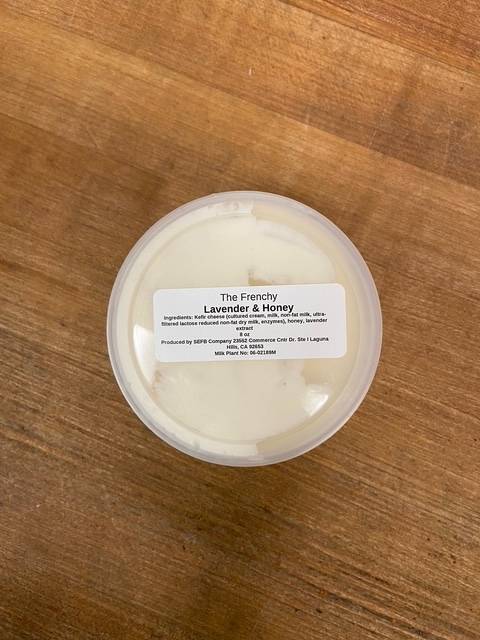Ingredients: Kefir cheese (cultured cream, milk, non-fat milk, ultra-filtered lactose reduced non-fat dry milk, enzymes), honey, lavender extract