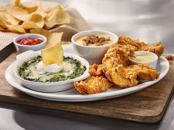 Choose three homestyle appetizers. Chips & Homemade Queso, Santa Fe Spinach Dip, Hand-Breaded Chicken Tenders, Wisconsin Cheese Bites or Cheddar's Queso Fries.