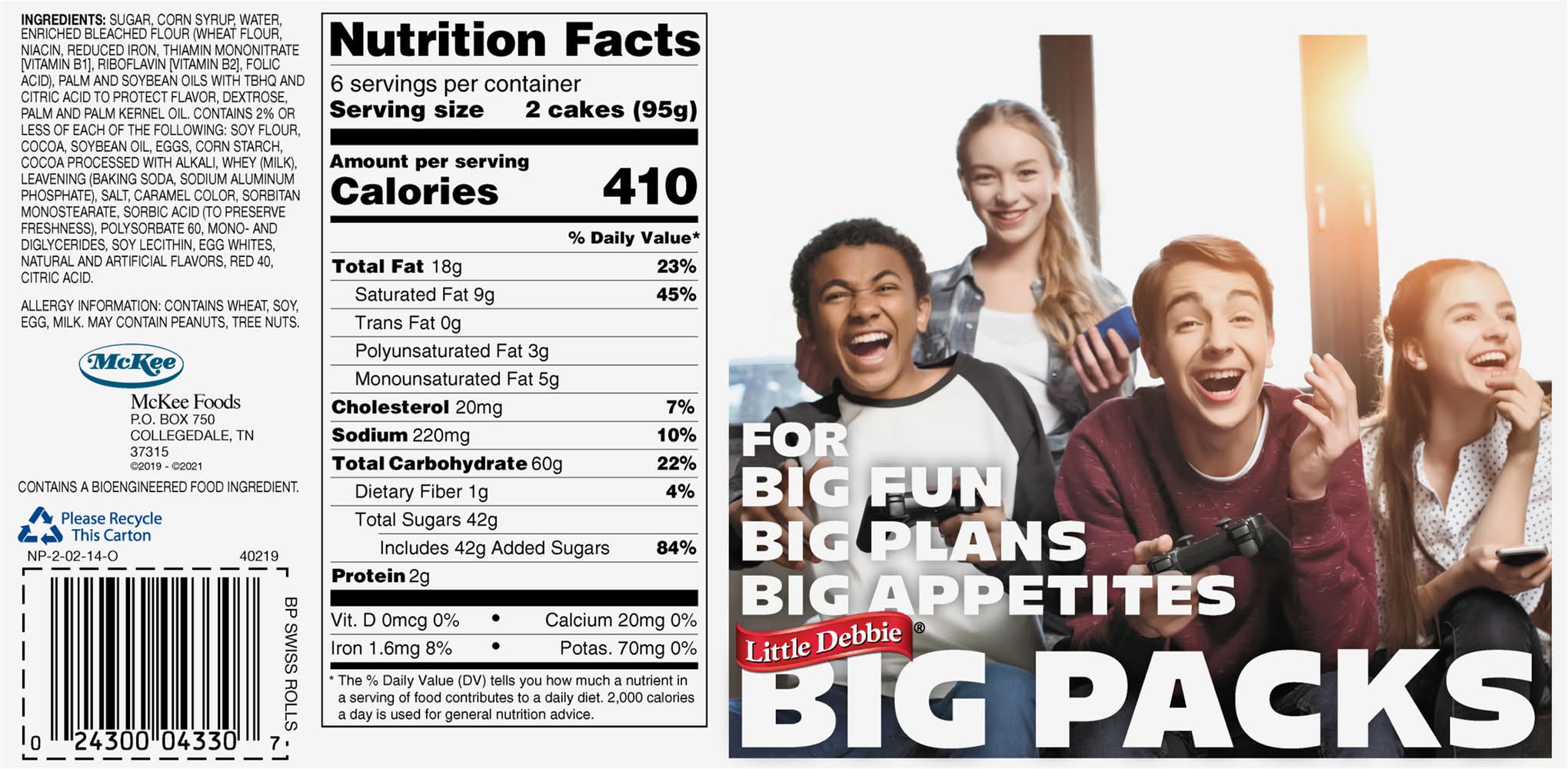 Contains a bioengineered food ingredient. McKee A family bakery. For big fun Big plans Big appetites. Big packs. Guarantee fresh. Our Family Promise Quality, freshness and taste. Send or have available the dated end panel. • Size: 6/1.2 OZ • McKee Foods, PO Box 750,Collegedale,TN,37315
