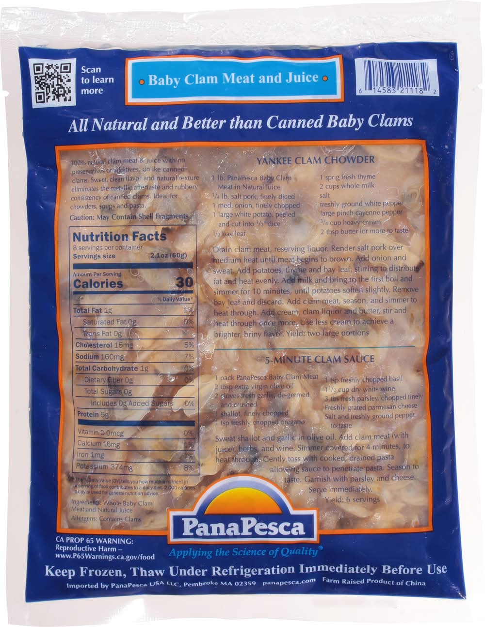 Ingredients: Whole Baby Clam Meat and Natural Juice Contains: Molluscan Shellfish, Clam
