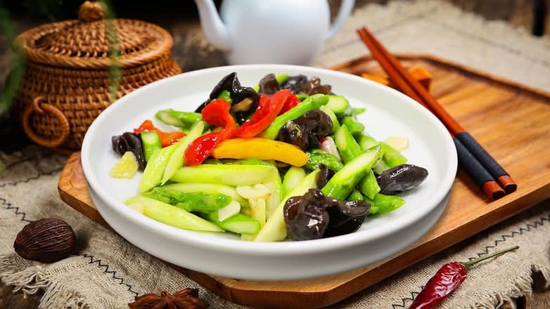 Stir-Fried Asparagus With Black Fungus 芦笋炒木耳