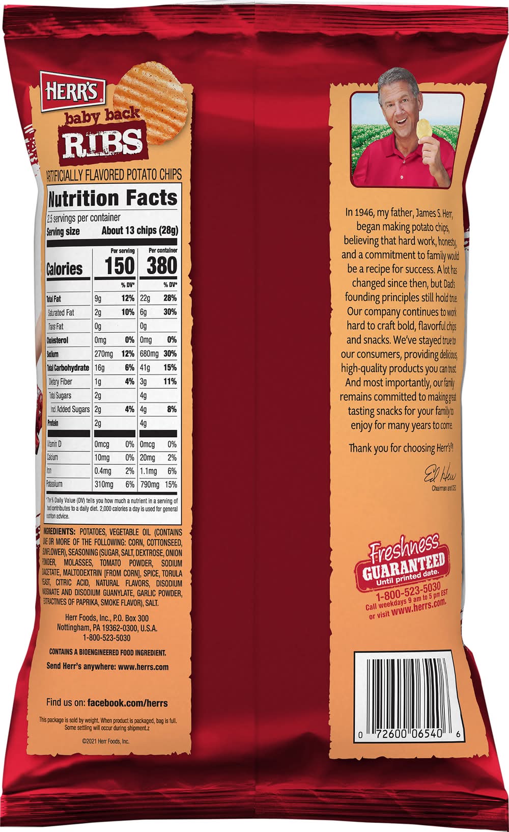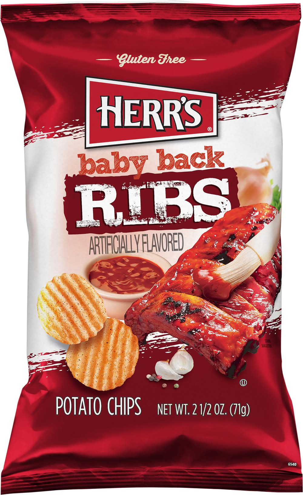 Baby Back Ribs Potato Chips • Brand: Herr's • Flavor: Baby back ribs • gluten-free, kosher