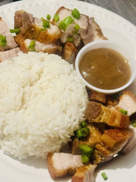Pork belly simmered in aromatics and then deep fried. Served with steamed rice and lechon sauce.