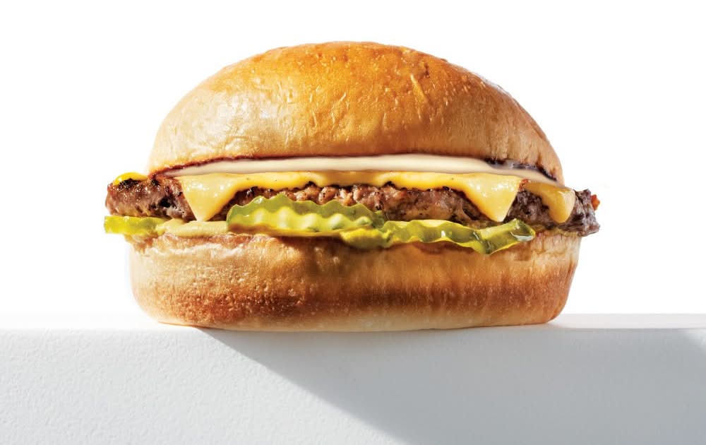 All beef patty, melted American cheese, pickles, mustard and mayonnaise on a toasted brioche bun.