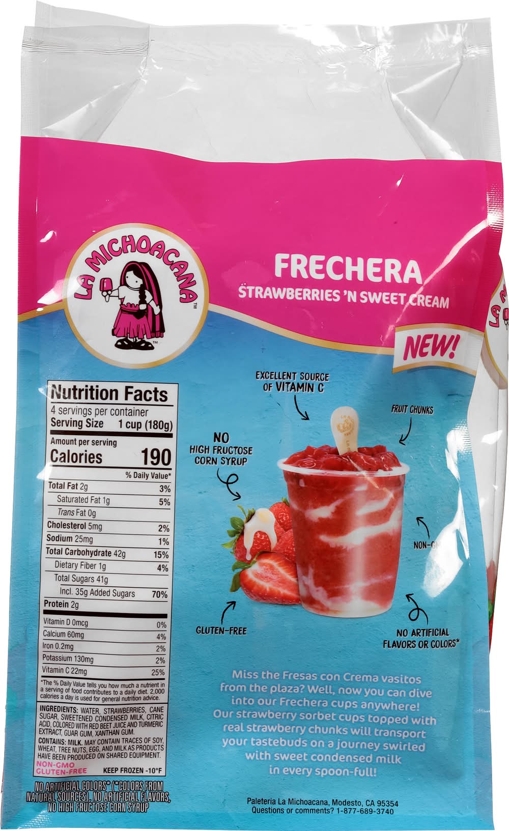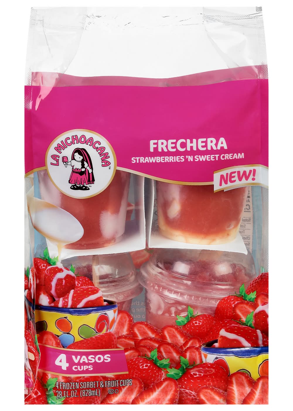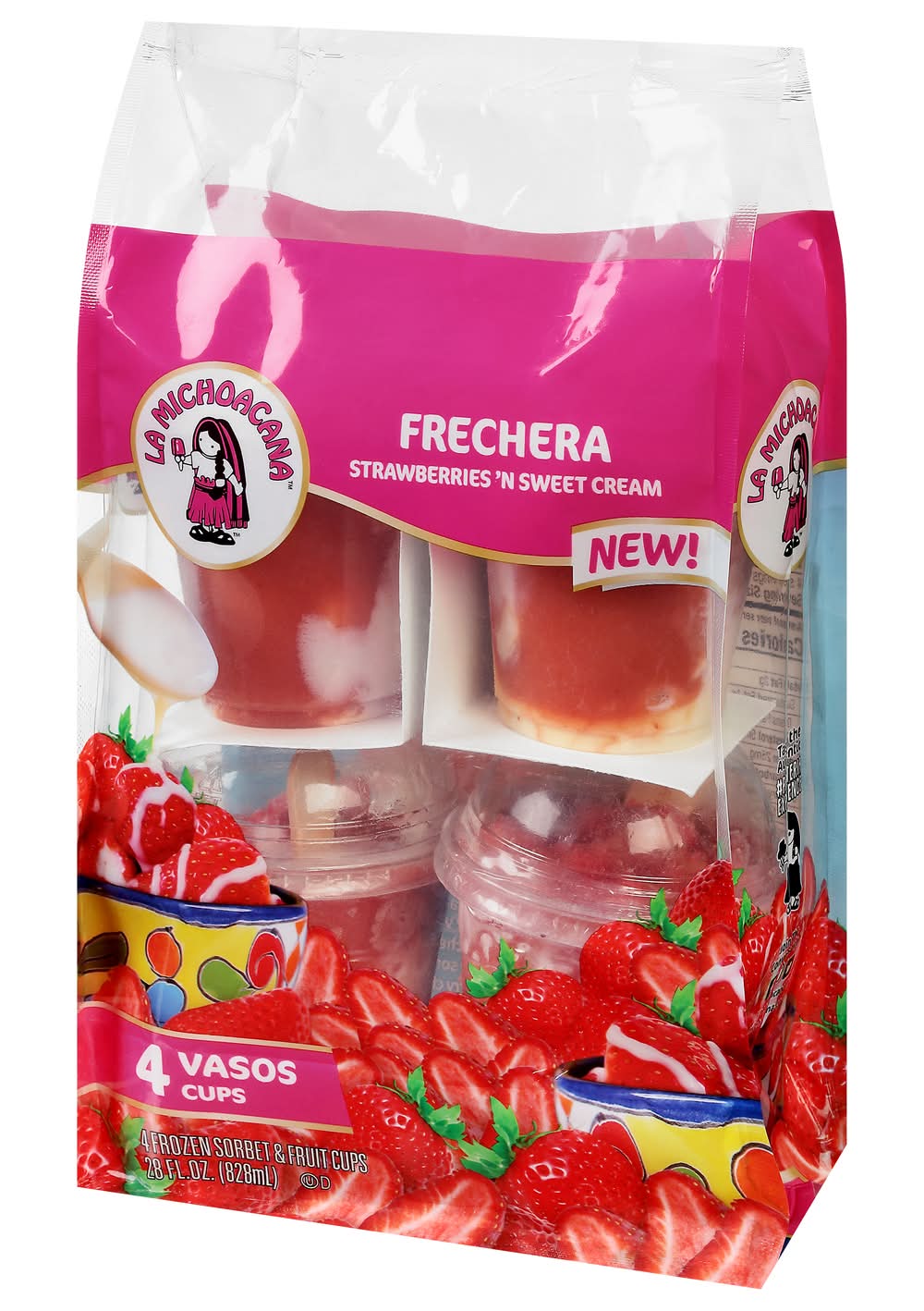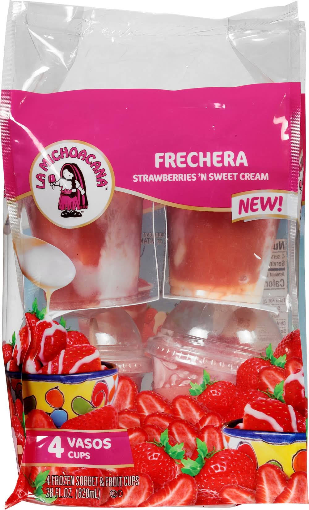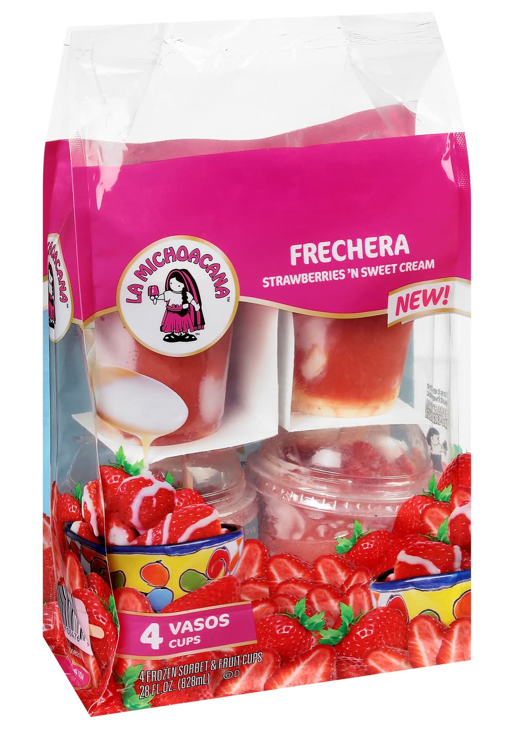 La Michoacana Frozen Sorbet & Fruit Cups, Strawberries (28 fl oz, 4 ct)