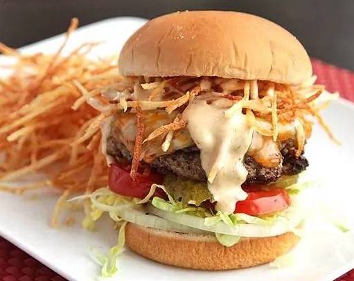 Pan de Frita (redondo) Frita, Queso, Tomate, Cebolla, Ketchup, Mostaza, Mayonesa, Pepino