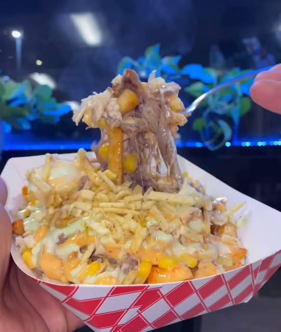 This plate is a delicious street food delight! It features a generous serving of fries, sweet corn, shredded cheese, an assortment of homemade sauces, hard boiled quail eggs and your choice of chicken or shredded beef or both. Serves 2