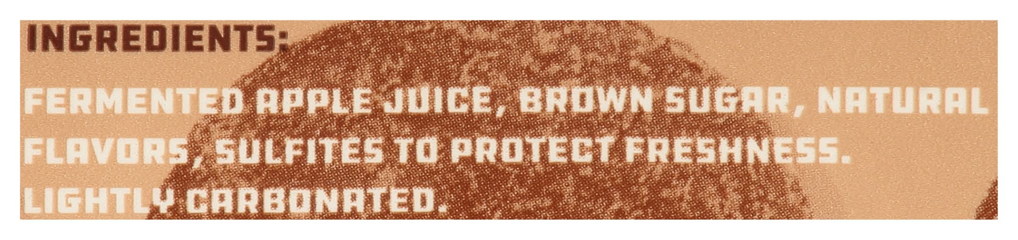 Ingredients: Fermented Apple Juice, Brown Sugar, Natural Flavors, Sulfites to Protect Freshness. Lightly Carbonated