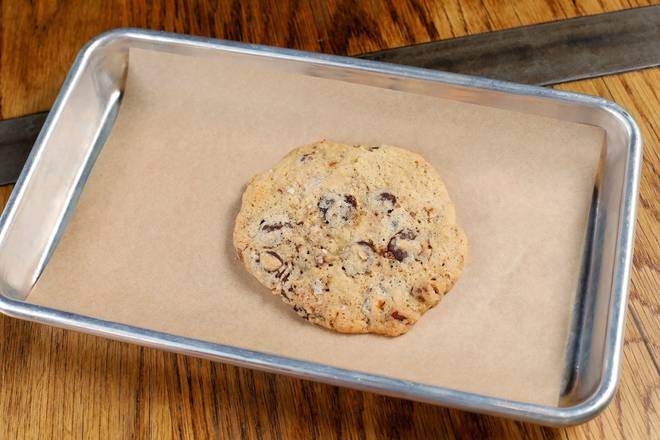 Chocolate chunk-pecan cookie w/chile arbol (butter, flour, brown sugar, vanilla extract, baking powder, baking soda, pecans, bittersweet chocolate, chile arbol, sea salt)