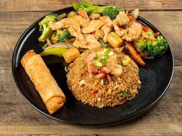 Chicken with Brocoli oriental fried rice (no shrimp) and egg roll