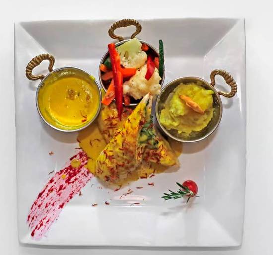 Herbed mixed grilled kebab platter made of kofta, lamb chops, adana kebab, chicken shish kebab, lamb shish kebab, grilled chicken wings and served with Turkish rice, grilled tomatoes, green peppers, and pearls onion, yogurt and thin lavash bread.