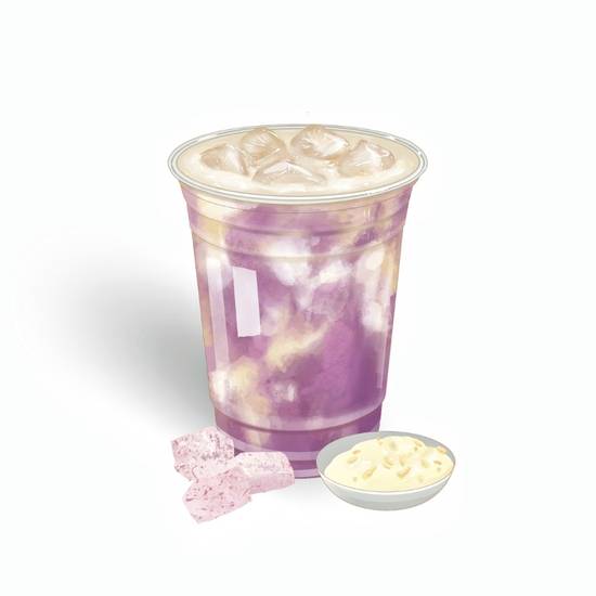 This delightful drink combines the earthy sweetness of fresh taro paste with chewy mochi for a unique texture and flavor experience.
