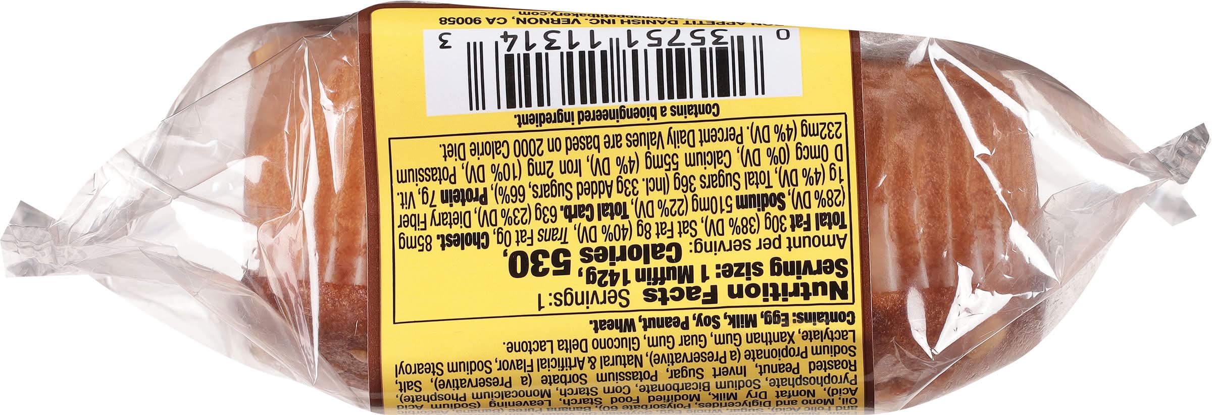 Ingredients: Enriched Bleached Wheat Flour (Wheat Flour, Malted Barley Flour, Niacin, Ascorbic Acid, Reduced Iron, Thiamine Mononitrate, Riboflavin, and Folic Acid), Sugar, Whole Egg, Soybean Oil, Water, Palm Shortening (Palm Oil, Mono and Diglycerides, Polysorbate 60), Banana Puree (Banana, Ascorbic Acid), Nonfat Dry Milk, Modified Food Starch, Leavening (Sodium Acid Pyrophosphate, Sodium Bicarbonate, Corn Starch, Monocalcium Phosphate), Roasted Peanut, Invert Sugar, Potassium Sorbate (a Preservative), Salt, Sodium Propionate (a Preservative), Natural & Artificial Flavor, Sodium Stearoyl Lactylate, Xanthan Gum, Guar Gum, Glucono Delta Lactone Contains: Wheat, Barley, Eggs, Soybeans, Milk, Corn, Peanuts