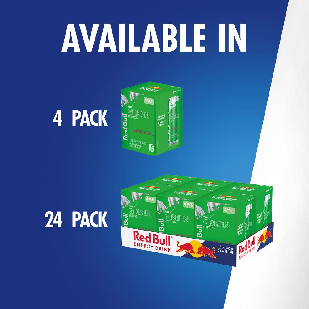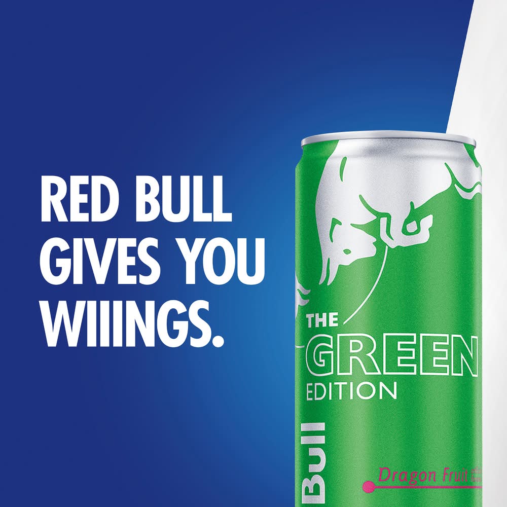 Red Bull Green Edition Dragon Fruit Energy Drink gives you Wiiings whenever you need them. Red Bull Green Edition is a lightly carbonated energy drink with a blend of caffeine, taurine, B vitamins, real sugar and water with the exotic taste of dragon fruit.* With 160 calories per 12 fl oz can, Red Bull is great for any occasion. While aiming for great heights during your workday, in your workouts or when gaming, why not crack open a refreshing can of Red Bull? Drink Red Bull straight from the can or enjoy in a glass over ice. This 24-pack of Red Bull will keep you stocked for any occasion, whether it’s hanging with friends, watching the game or going on a road trip. Be ready for the big moments with a can of Red Bull. Store these cans of Red Bull at room temperature or toss them in the fridge. Red Bull gives you Wiiings. Always check can labels for most updated product nutritional and ingredient information. Calcium and sugars values declared on labels may vary slightly depending on production locations.