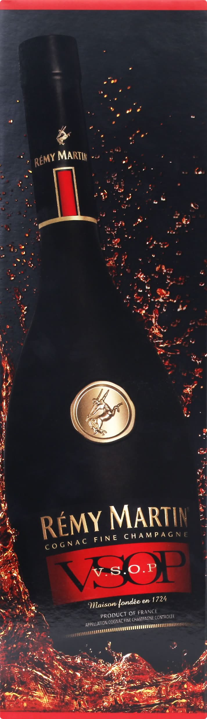 Fine champagne. Since 1724, the House of Remy Martin has been driven by one quest - to capture the heart of Cognac: Cognac Fine Champagne. With always the same signature style since its creation, this vibrant gold VSOP is smooth, rich and perfectly balanced, revealing ripe stone fruit and vanilla notes. Enjoy it neat, on ice or in your cocktail of choice. Remy Martin VSOP, the reference. 40% alc/vol. 80 Product of France. • Flavor: Vanilla-stone fruit-licorice • Alcohol by volume: 40%