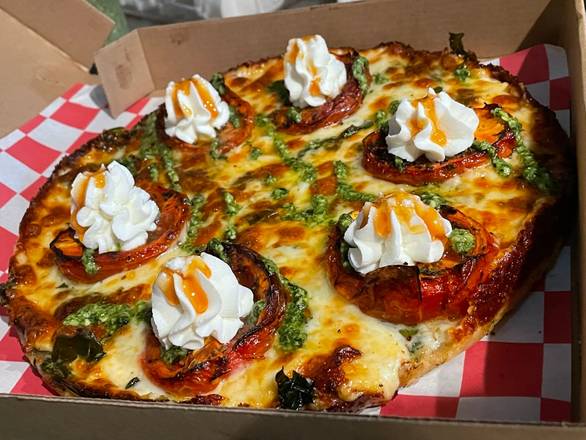 Garlic butter, pesto, spinach, roasted roma tomato, whipped ricotta, hot honey