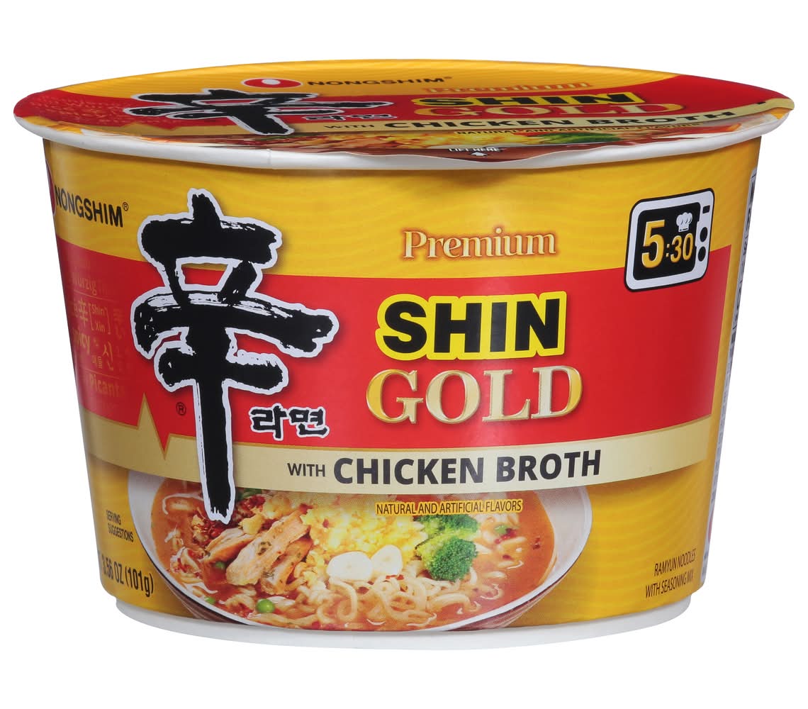 Nongshim Premium Ramyun Noodle With Chicken Broth Soup Big Bowl, Shin Gold (3.56 oz)