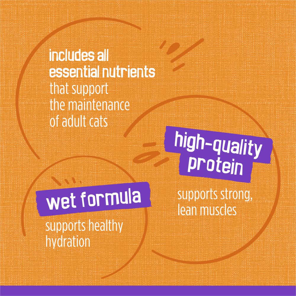 Quench your curious cat's cravings for savory goodness when you serve Real chicken delivers the poultry flavor that your cat adores, and the tender, bite-sized chunks offer a pleasing texture she's sure to purr for. A decadent gravy for cats balances out this delectable canned cat food recipe and adds healthy hydration, giving your cat a mouthwatering reason to lick her dish clean at mealtime. Open the pull-tab can to let the rich chicken cat food recipe aroma capture her interest, and watch as she happily nibbles her way to a satisfied belly. She'll adore the yummy classic cat food flavors • Brand: Purina friskies • Nestle purina petcare company, St. LouisMO63164USA1-800-778-8864Purina.com • Packaging: Reusable