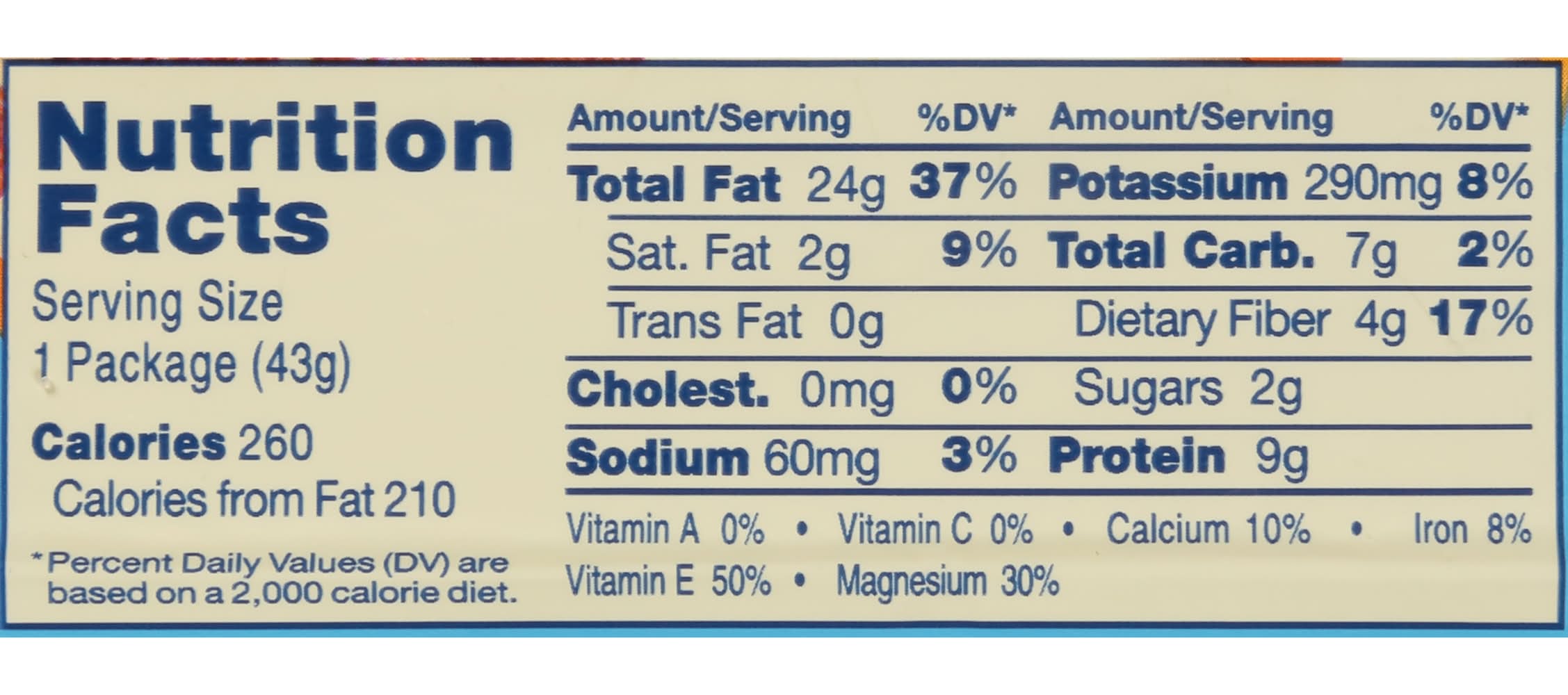 Ingredients: ALMONDS, VEGETABLE OIL (CANOLA, SAFFLOWER AND/OR SUNFLOWER) AND SEA SALT. Contains: MAY CONTAIN OTHER TREE NUTS.