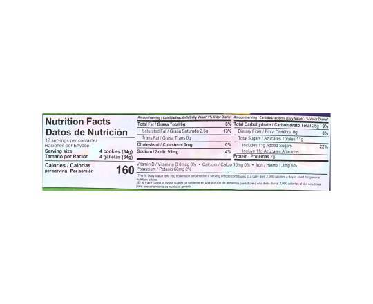 Ingredients: Wheat Flour, Sugar, Vegetable Palm Fat, Non-Hydrogenated Vegetable Palm Oil, Corn Starch, Salt, Soy Lecithin, Sodium Bicarbonate, Artificial Flavors, Citric Acid, Blue #1, Yellow #5 Contains: Dairy, Gluten, Lactose, Milk, Soy, Wheat