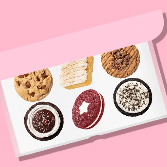 - Cookie Flavors - Six PackChoose 6RequiredThe Cookie That Stole ChristmasChocolate Crumb Cookie ft. OREO®Holiday Red Velvet Sandwich CookieCandy Cane Brownie CookiePeanut Butter Cup Cookie ft. REESE'SEggnog Tres Leches Cake+$0.99Milk Chocolate Chip Cookie