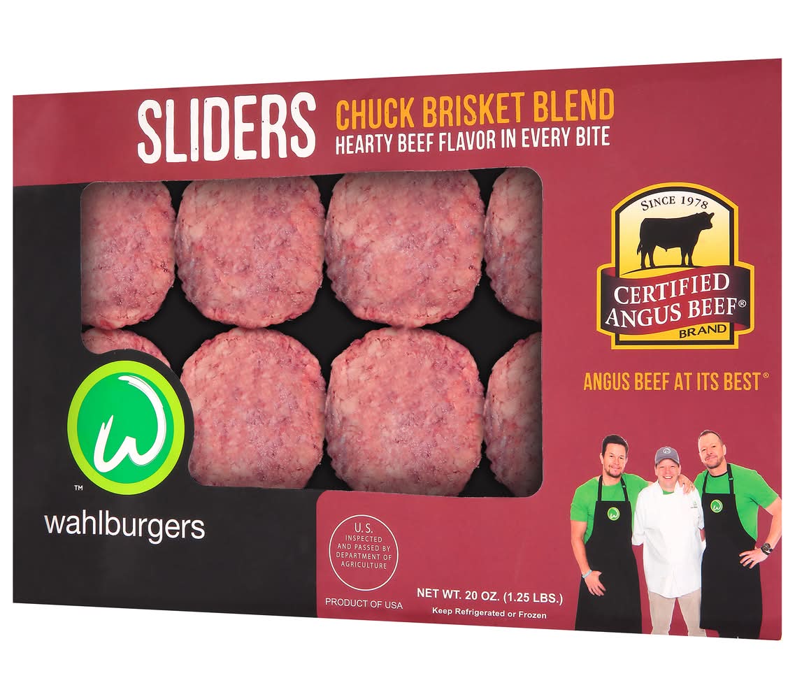 Sliders, Chuck Brisket Blend • Brand: Wahlburgers • Number of servings: 4