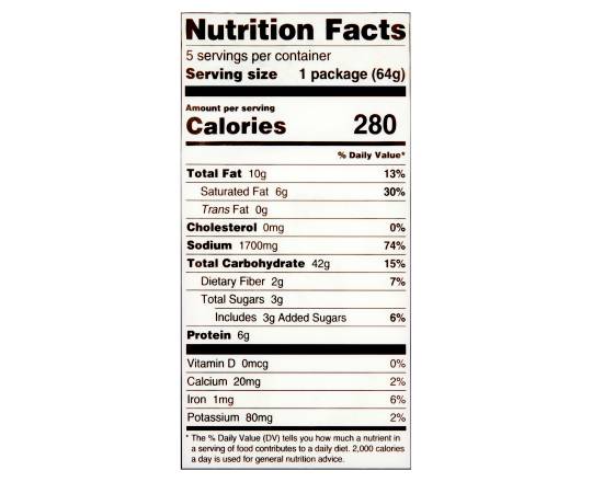 Ingredients: Wheat Flour, Palm Oil, Tapioca Starch, Salt, Sugar, Dried Vegetables (Lemon Leaves, Scallions, Carrots, Onions, Shallots), Spices, Maltodextrin, Monosodium Glutamate, Disodium Inosinate, Disodium Guanylate, Guar Gum, Natural Flavors, Sodium Hexametaphosphate, Sodium Bicarbonate, Sodium Carboxymethyl- Cellulose, Sodium Polyphoshate, Riboflavin, Mixed Tocopherols (to preserve freshness) Contains: Gluten, Soy, Wheat