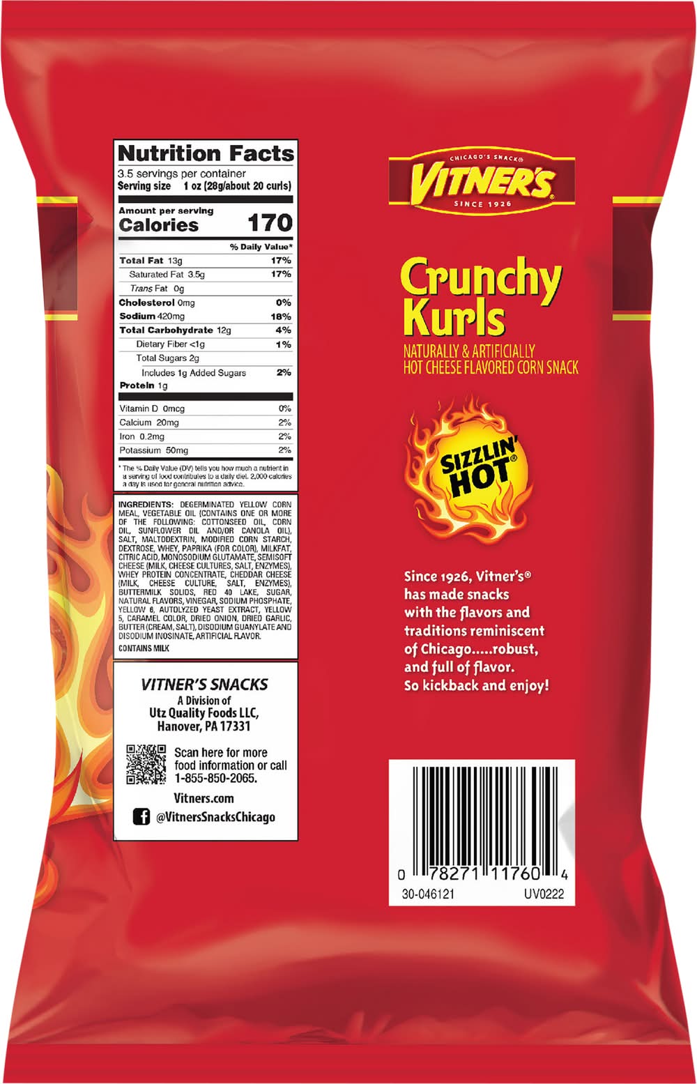 Vitner's Sizzlin' Hot Cheese Crunchy Kurls (3.5 oz)