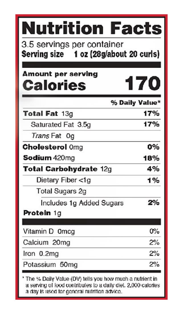 Crunchy Kurls, Hot Cheese, Sizzlin' Hot Number of servings: 3