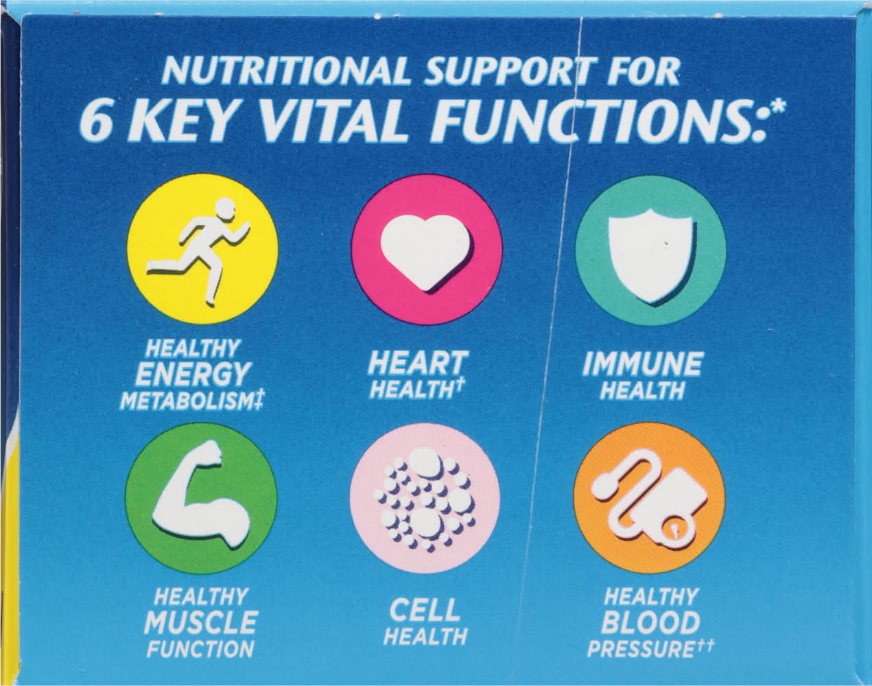 One A Day Men's Health Formula Multivitamins offer a wide variety of key nutrients in a single tablet. One A Day Men's Health Formula is ideal for men who are proactive about their health. This daily multivitamin is specially designed to address key health concerns of men. This easy to take tablet contains Vitamins A, B6, B12, C, D and E, Riboflavin, Thiamin, Niacin, Folic Acid, Pantothenic Acid, Zinc, Manganese, Biotin, Magnesium, Copper, Calcium, Selenium, and Chromium. One A Day Men's Health Formula Multivitamin is Formulated to support: heart health, healthy blood pressure, immune health, healthy muscle function, and physical energy by helping convert food to fuel. One A Day Men's Health Formula Multivitamins are free of gluten, wheat, dairy, artificial colors, and artificial sweeteners. Adult men should take one tablet daily with food. One A Day Multivitamins can provide nutritional support that you and your family may need. Not a replacement for heart medications To help support blood pressure levels already within the normal range This statement has not been evaluated by the Food and Drug Administration. This product is not intended to diagnose, treat, cure, or prevent any disease. This item is part of our Test to be Trusted Program Please visit https://www.cvs.com/content/tested-trusted for program details and additional information One a day men's health formula multivitamin is a complete multivitamin specially designed for the leading concerns of men like heart health(1) Contains key nutrients like vitamins A, B6, C, D and E, riboflavin, thiamin, and niacin Formulated to support: Heart health, (1) healthy blood pressure, (2) immune health, healthy muscle function, and physical energy by helping convert food to fuel Adult men should take one tablet daily with food. One a day Men's Health Formula Multivitamins are free of gluten, wheat, dairy, artificial colors, and artificial sweeteners • male • Bayer Healthcare LLC, Whippany,NJ,07981 • Packaging: Reusable