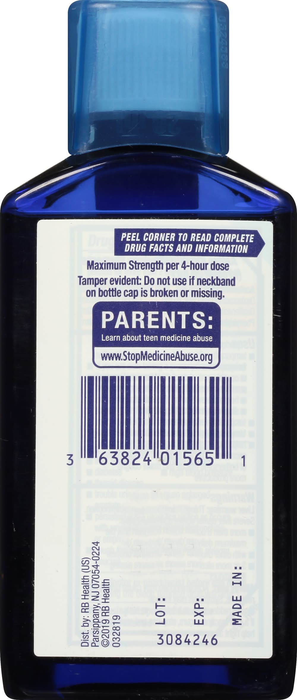For ages 12+ Acetaminophenpa in reliever & fever reducer. Dextromethorphan HBr Cough suppressant. Guaifenesin expectorant. Phenylephrine HCl nasal decongestant. Controls cough, thins & loosens mucus. Nasal & chest congestion. Sinus pressure & congestion. Body pain, headache, fever & sore throat. Maximum strength per 4 hour dose. RB Health (US), Parsippany, NJ, 07054-0224
