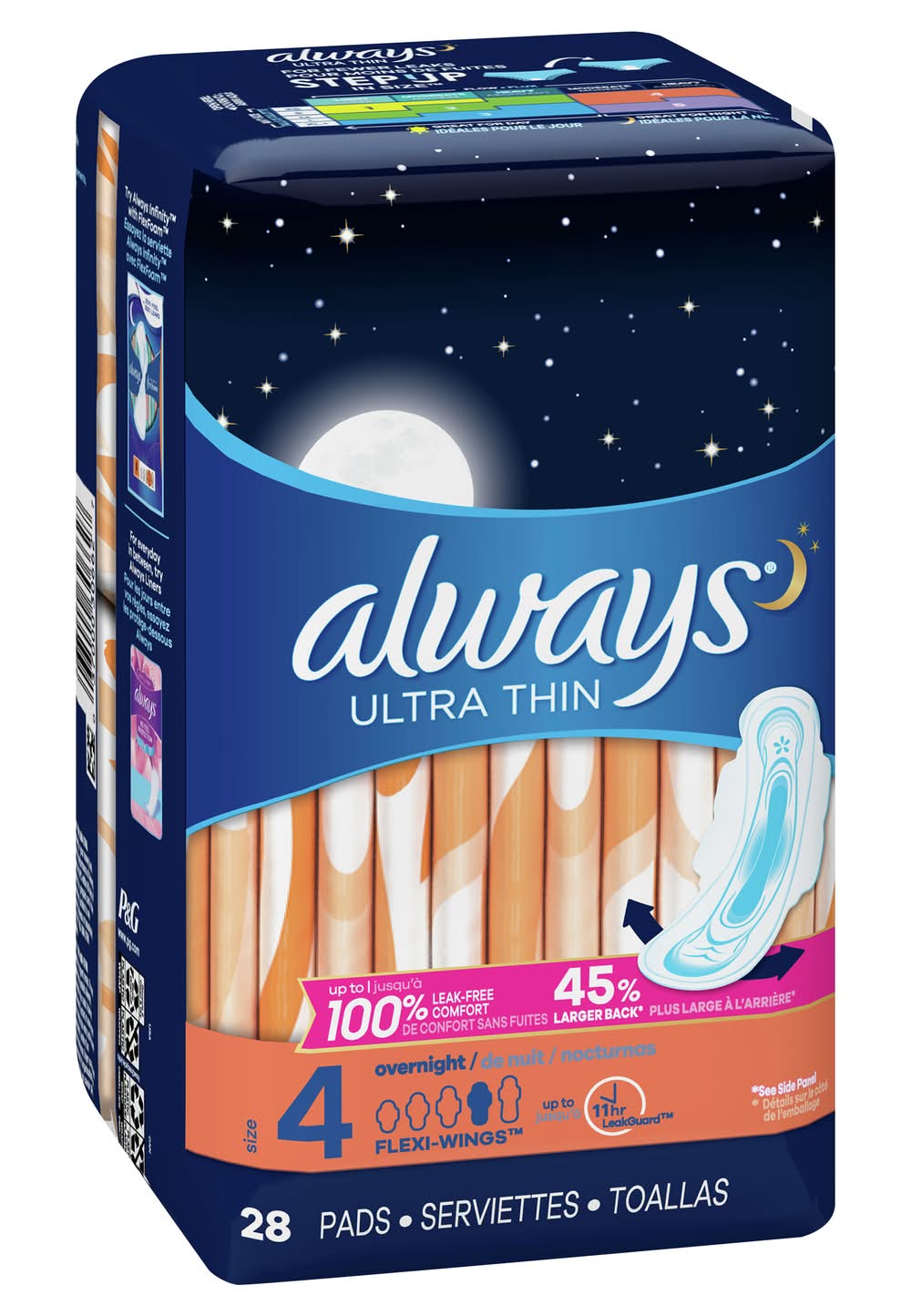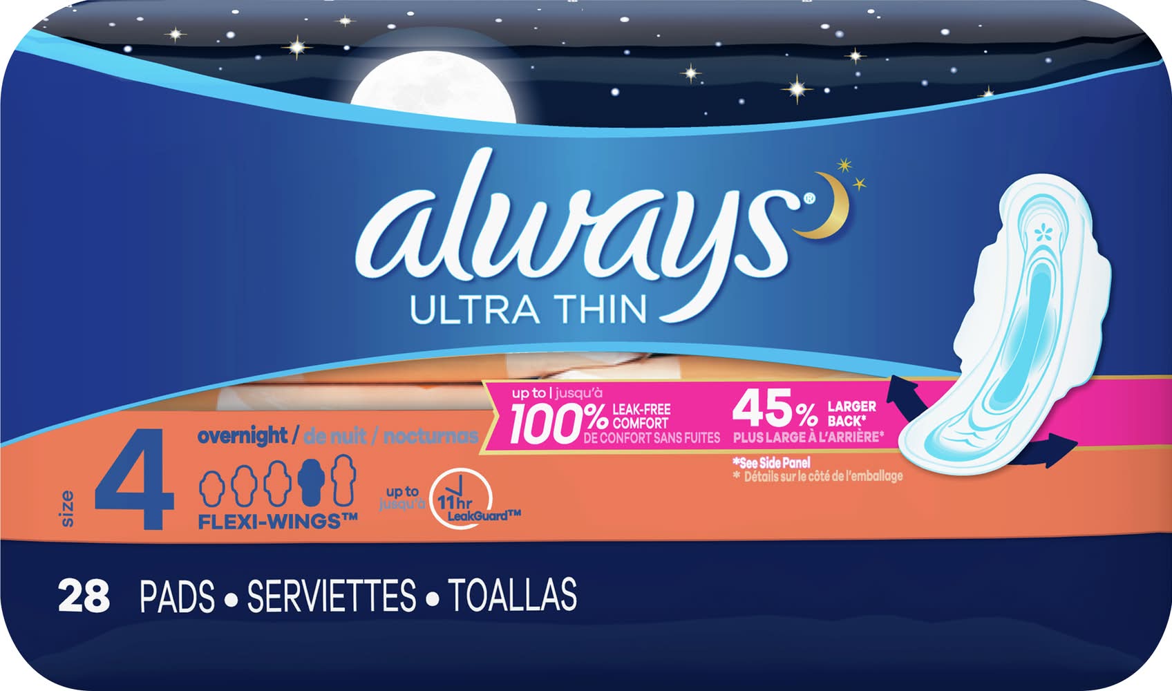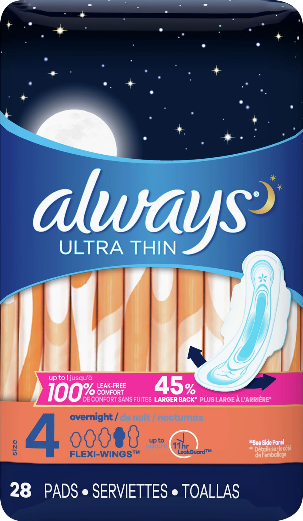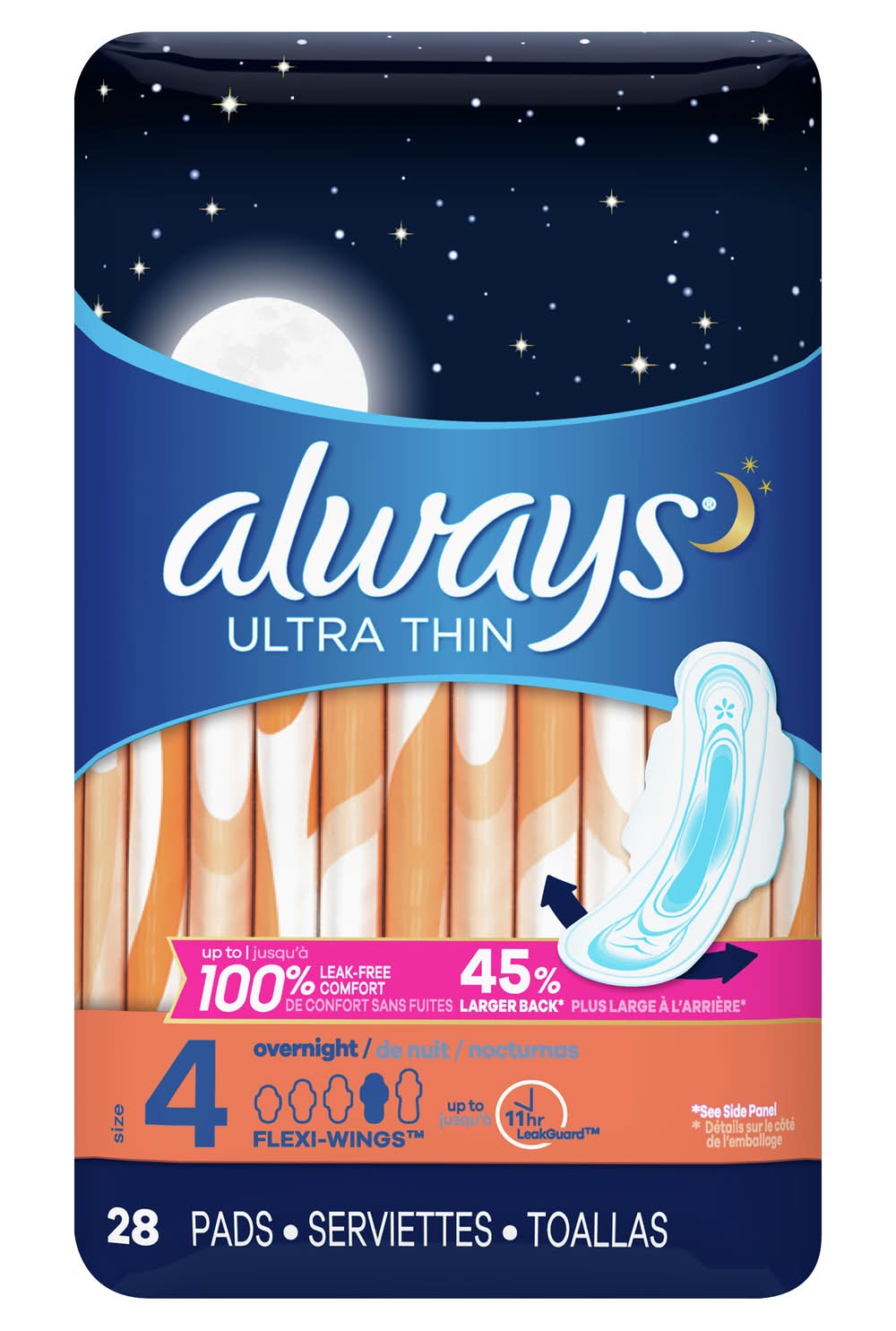 Always Ultra Thin Overnight Flexi Wings Pads, 4 (10.6 oz, 28 ct)