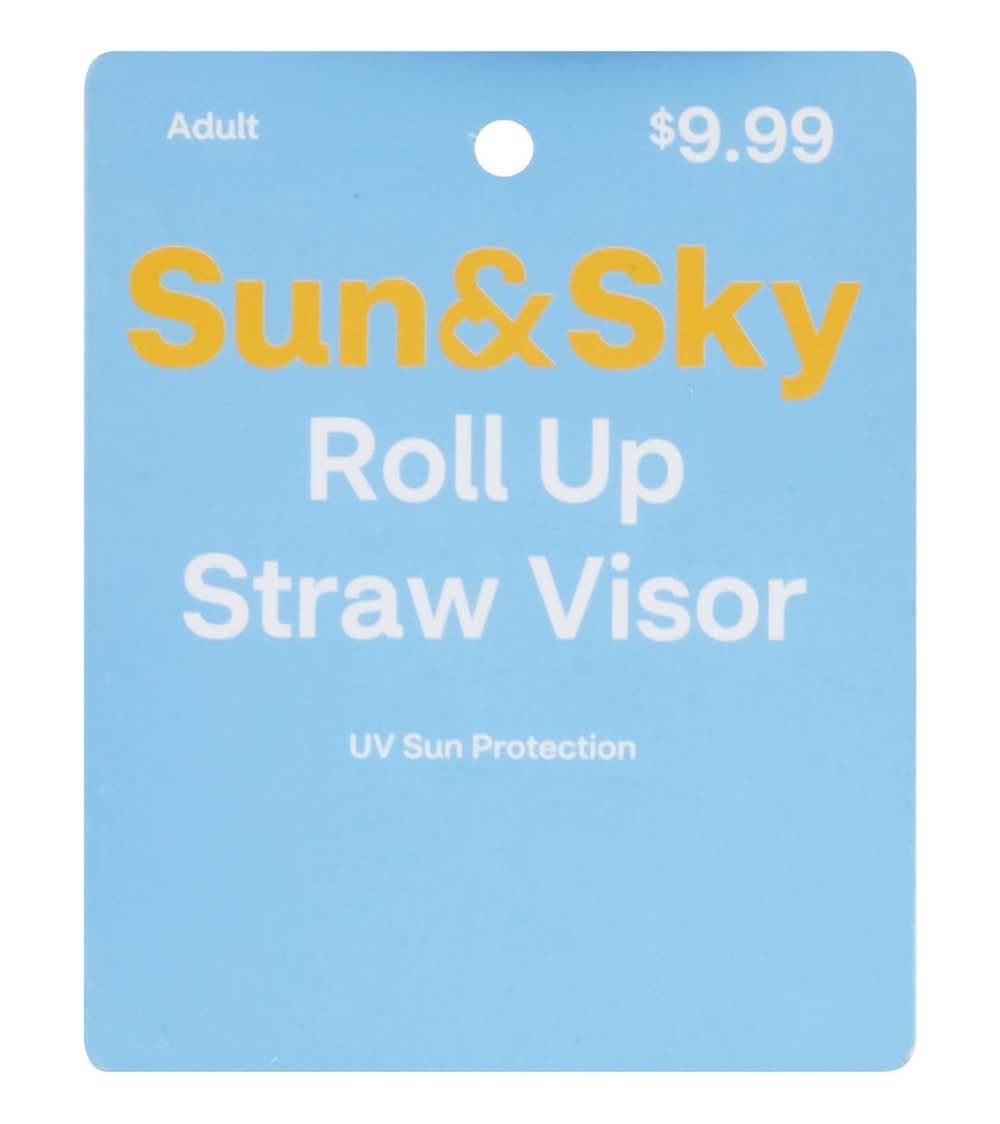 Sun & Sky Adult Roll Up Straw Visor, Tan-Black