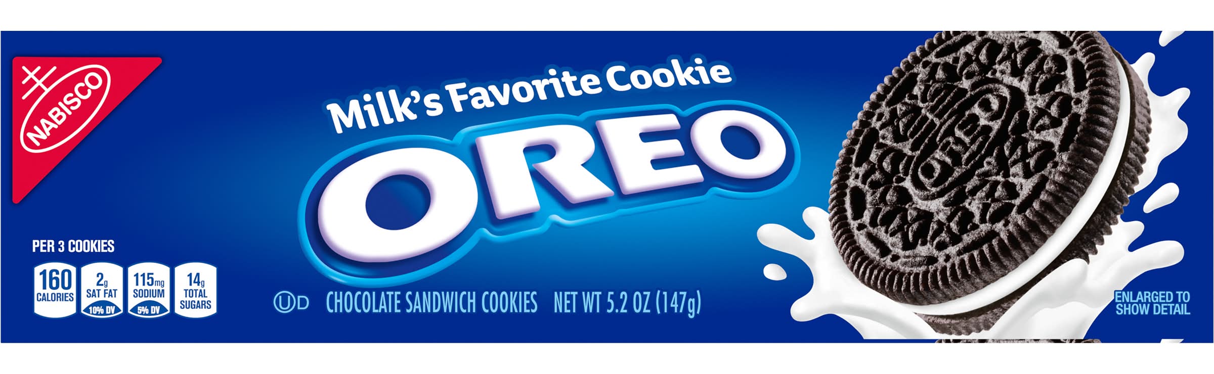 Supremely dunkable, original OREO creme filling between chocolate wafers-making them milk's favorite cookie. are great for serving as a dessert, with ice cream, as party snacks or for packing sweet snacks with lunch at school or work. You can even mix these kosher cookies into your favorite dessert recipe or cheesecake recipe. Individual cookie packs keep snack cookies fresh and is great for snacking, sharing, or taking on the go as travel snacks. Mondelez global llc, East Hanover,NJ,07936,USA