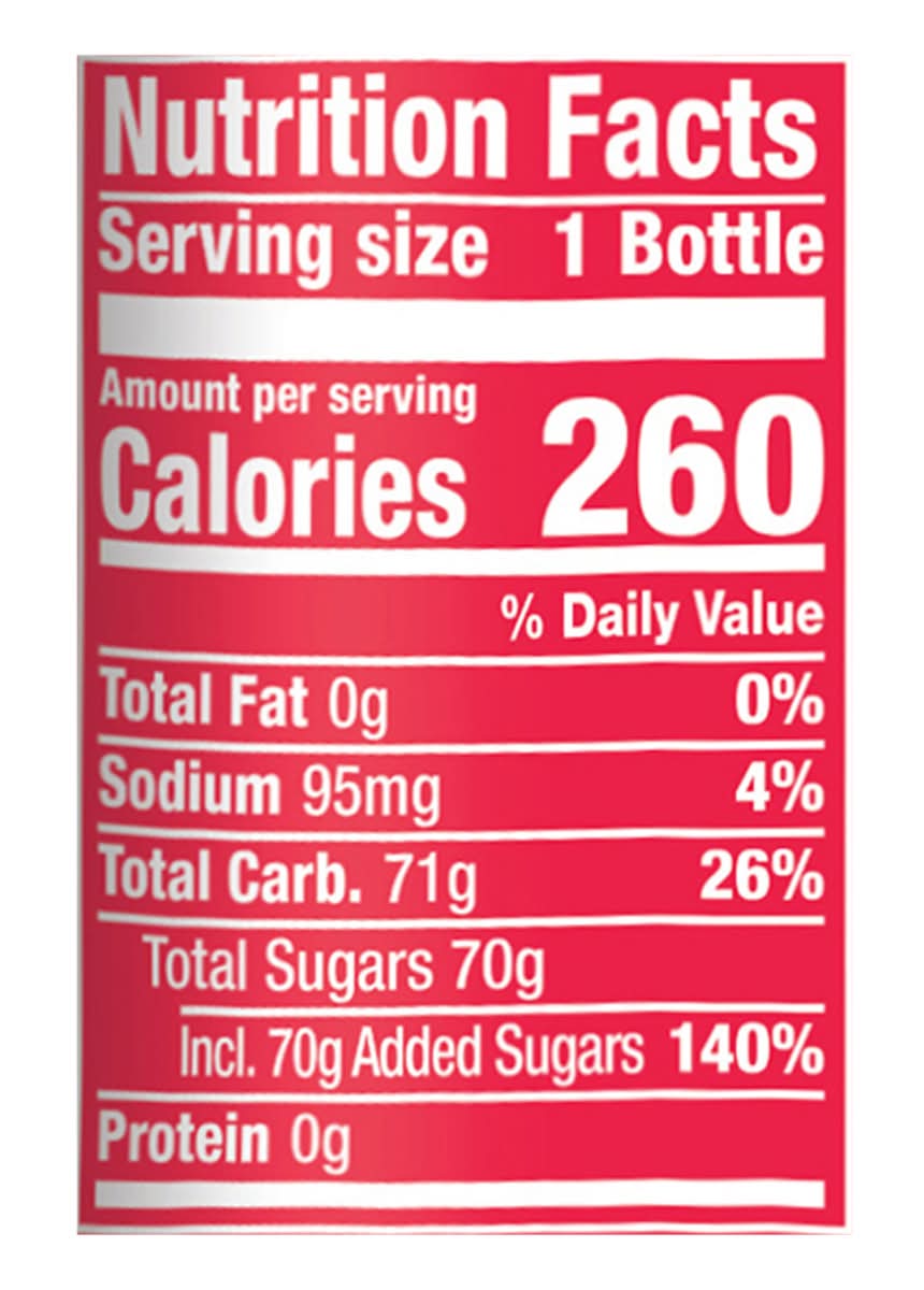 Ingredients: Carbonated Water, High Fructose Corn Syrup and 2% or Less of: Caramel Color, Natural and Artificial Flavors, Sodium Benzoate Preservative, Citric Acid, Phosphoric Acid, Caffeine, Malic Acid, Sodium Phosphate, Red 40. Contains: Corn Contains 66mg of caffeine