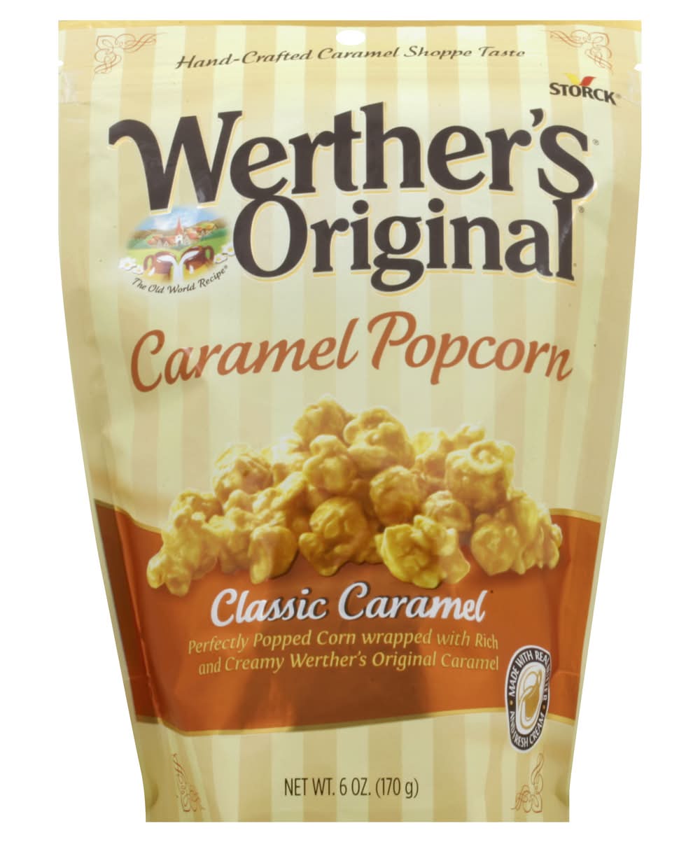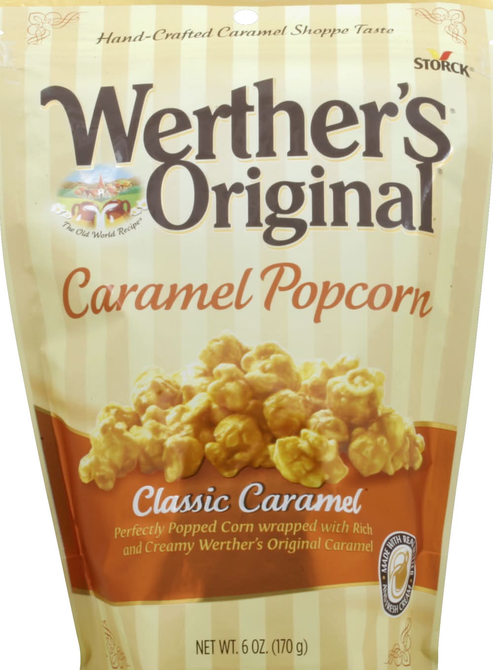 Perfectly popped corn wrapped with rich and creamy Werther's Original Caramel. Made with real butter and fresh cream. Hand crafted caramel shoppe taste. The old world recipe. A long time ago, in the small European Village of Werther, candy-maker Gustav Nebel created his finest candy. He used the best ingredients - real butter, fresh cream, white and brown sugars, a pinch of salt and a lot of time. Because they turned out especially well, they were named Werther's Original in honor of the little village. Crafting this smooth, creamy caramel became a family tradition handed down through generations. Now, we've combined this tradition and a snacking favorite to create Werther's Original Caramel Popcorn - the only popcorn with rich and creamy Werther's Original caramel wrapped around perfectly popped corn for a hand-crafted Caramel Shoppe taste that makes you feel like someone very special. • Flavor: Caramel • August Storck Kg, ChicagoIL 60654