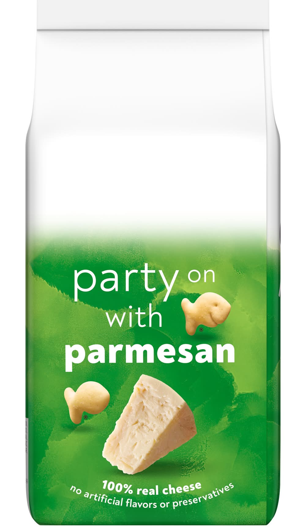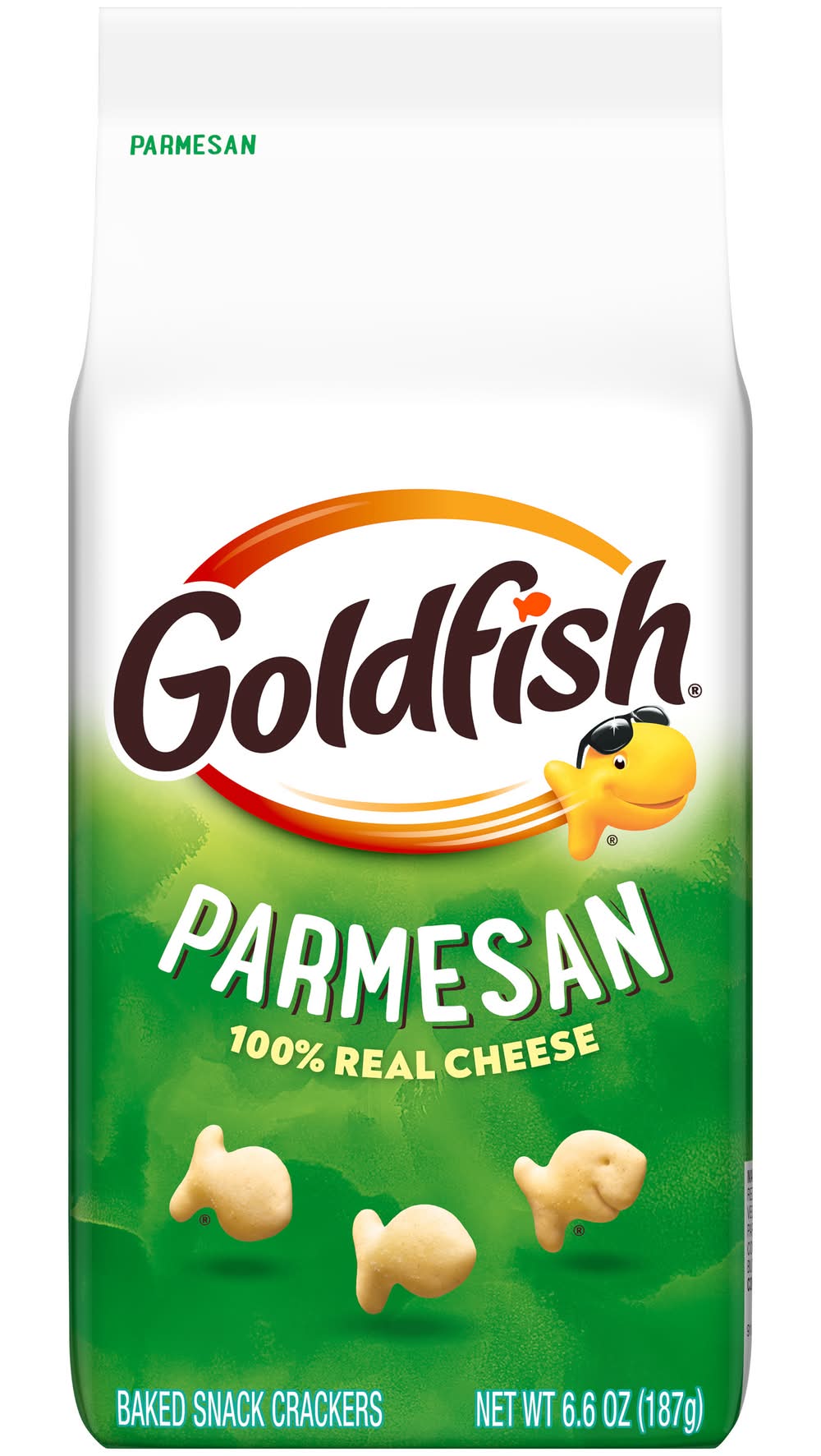 Say hello to Goldfish Parmesan Cheese Crackers, the snack that brings joy to every munch! These baked snack crackers are a delightful twist on the iconic Goldfish cracker, offering a burst of parmesan flavor that cheese lovers can't resist. Always baked with 100% real cheese, these cheesy crackers are a satisfying and flavorful snack. They're perfect for sharing during family game nights, adding fun to lunchboxes, or enjoying as a treat when friends come over. Each 6.6 oz bag is just the right size for sharing in any snacking moments. Crunchy and satisfying, grab Goldfish Parmesan Crackers whenever you're craving something delicious. • Flavor: Parmesan • Pepperidge Farm, Inc., Norwalk, CT, 06856 • Packaging: Reusable