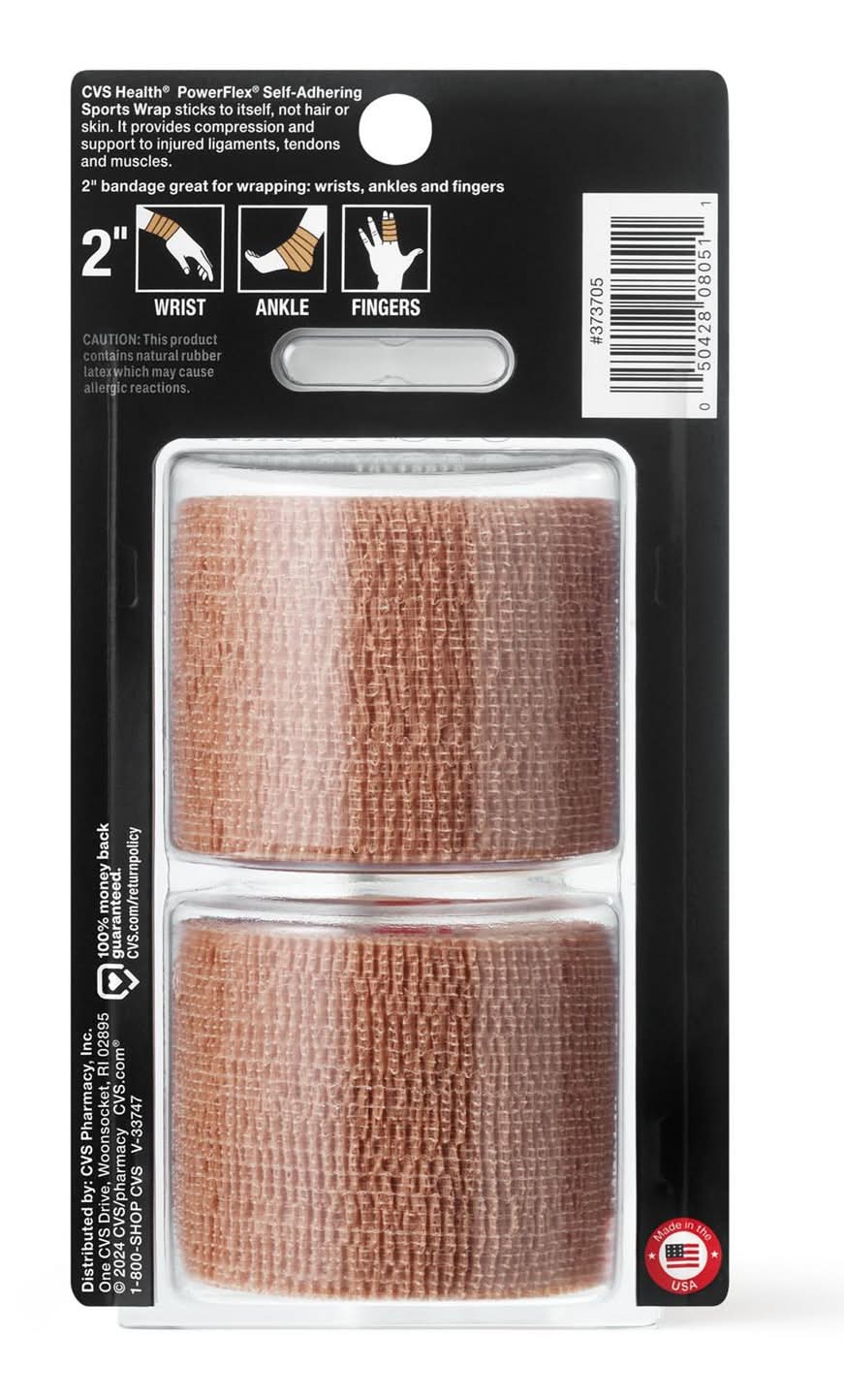 CVS Health Self-Grip Athletic Tape Bandage is a self-adhering product, designed to provide support without sticking to hair or skin. Its beige color offers a subtle look, suitable for a variety of applications. This twin pack ensures ample supply for continuous use. Eligible for purchase with HSA/FSA funds, it reflects CVS's commitment to quality. • Color: Beige • Size: 2x70 in