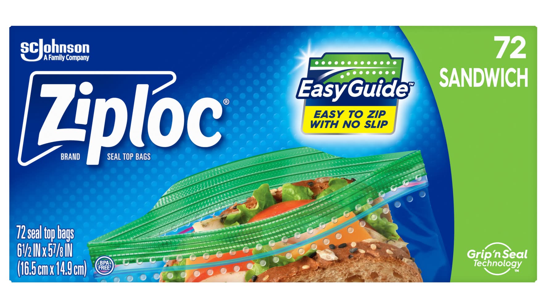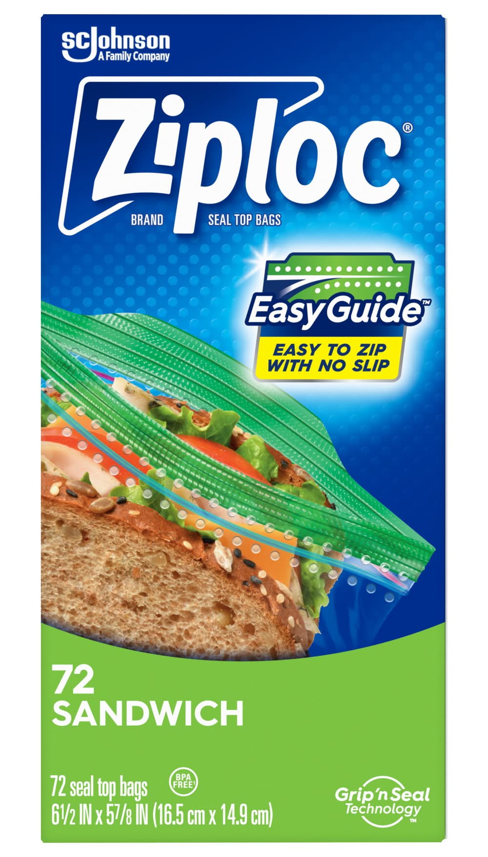 Ziploc Sandwich Bags, 16.5x14.9 cm (72 ct)