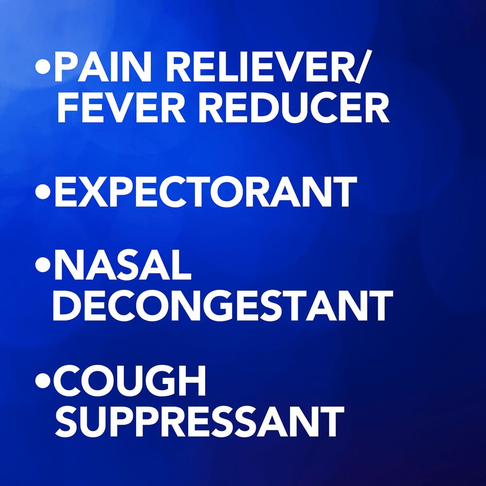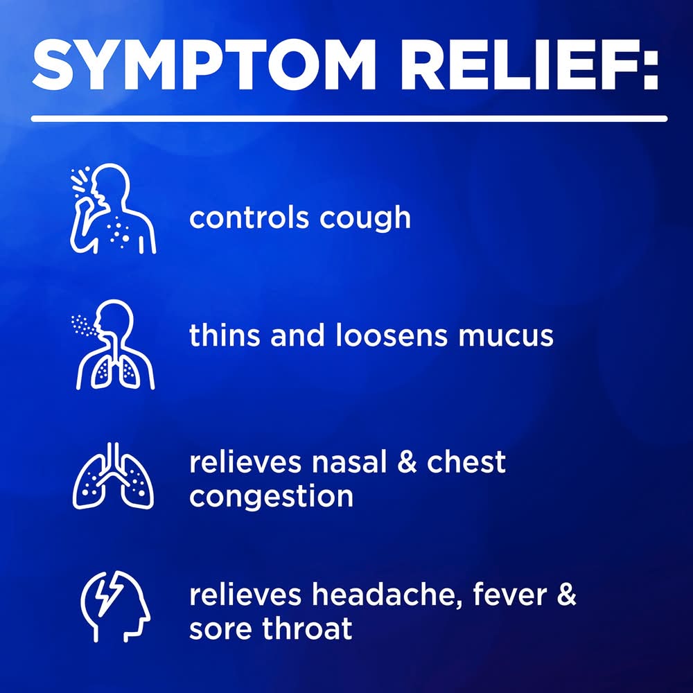 Compare to Mucinex® Fast-Max® Cold, Flu & Sore Throat active ingredients. Use multi-symptom, maximum strength Mucus Relief Cold, Flu & Sore Throat to control cough and relieve headache, fever, sore throat, nasal and chest congestion and to thin and loosen mucus. Non-drowsy, alcohol-free and sugar free for ages 12 years & older. Also gluten free. ACTIVE INGREDIENTS: Mucus Relief Cold, Flu & Sore Throat contains acetaminophen, dextromethorphan HBr, guaifenesin and phenylephrine HCl, which compare to the active ingredients in Mucinex® Fast-Max® Cold, Flu & Sore Throat. PAIN RELIEVER AND FEVER REDUCER: Temporarily relieves these common cold and flu symptoms: minor aches and pains, sore throat and headache. Also temporarily reduces fever. HSA/FSA Eligible. NASAL DECONGESTANT: Relieves nasal congestion due to the common cold by promoting nasal and/or sinus drainage. EXPECTORANT: Contains guaifenesin to help break up and thin mucus, make coughs more productive and clear out phlegm. COUGH SUPPRESSANT: Contains dextromethorphan hydrobromide to help suppress cough due to the cold and flu.