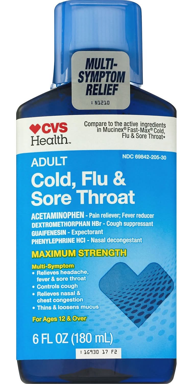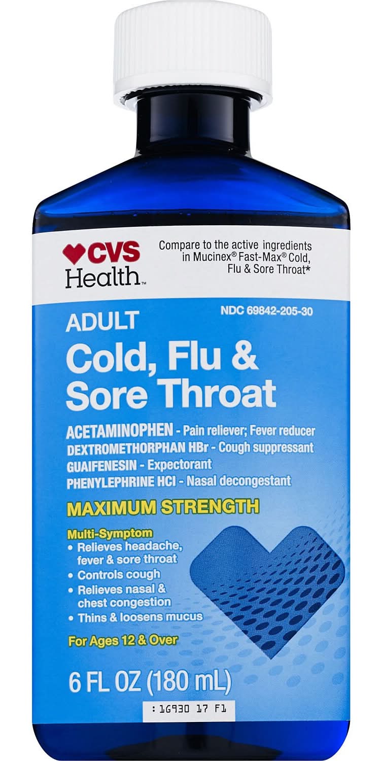 Cvs Maximum Strength Adult Cold, Flu & Sore Throat Liquid, 6 Oz