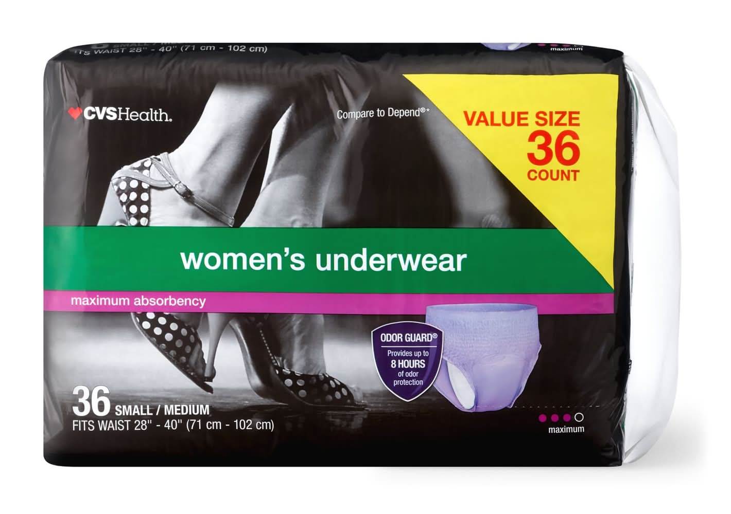 Cvs Women'S Underwear Maximum Absorbency, S/M, 36 Ct