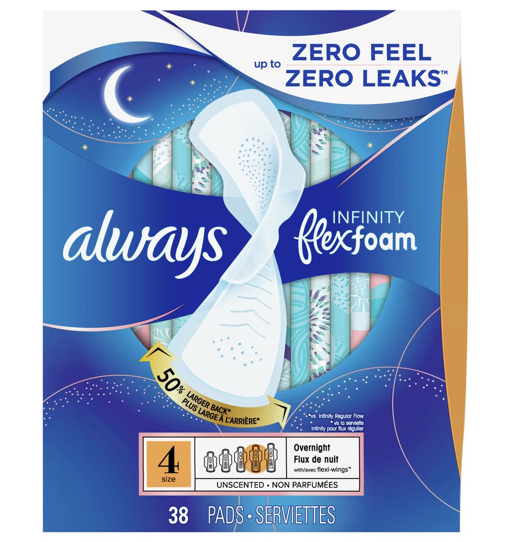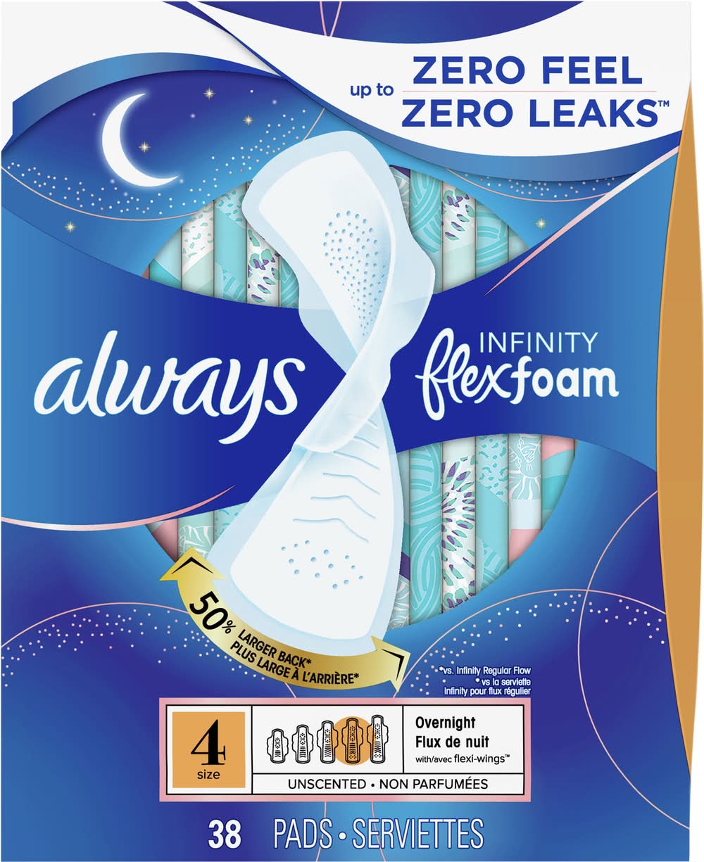 Always Infinity Flexfoam Overnight Pads With Wings, 4 (38 ct)