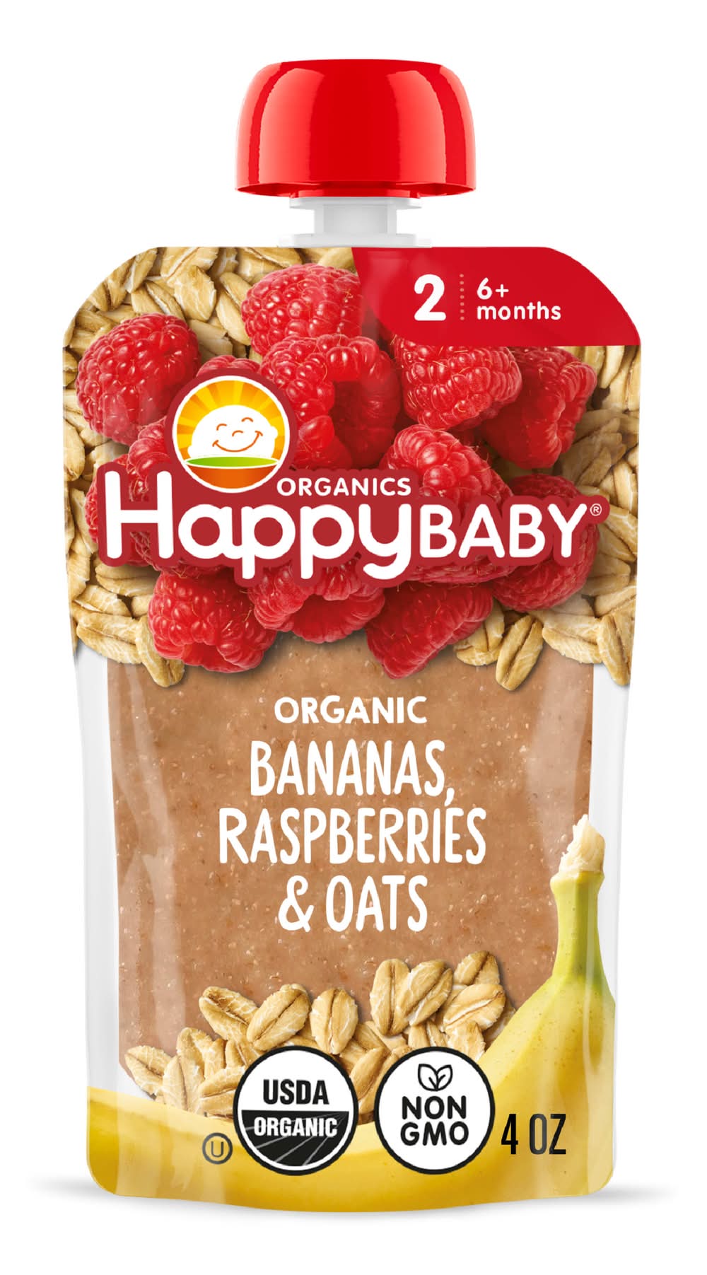 Happy Baby Bananas Raspberries & Oats Baby Food Puree, Stage 2 (4 oz)