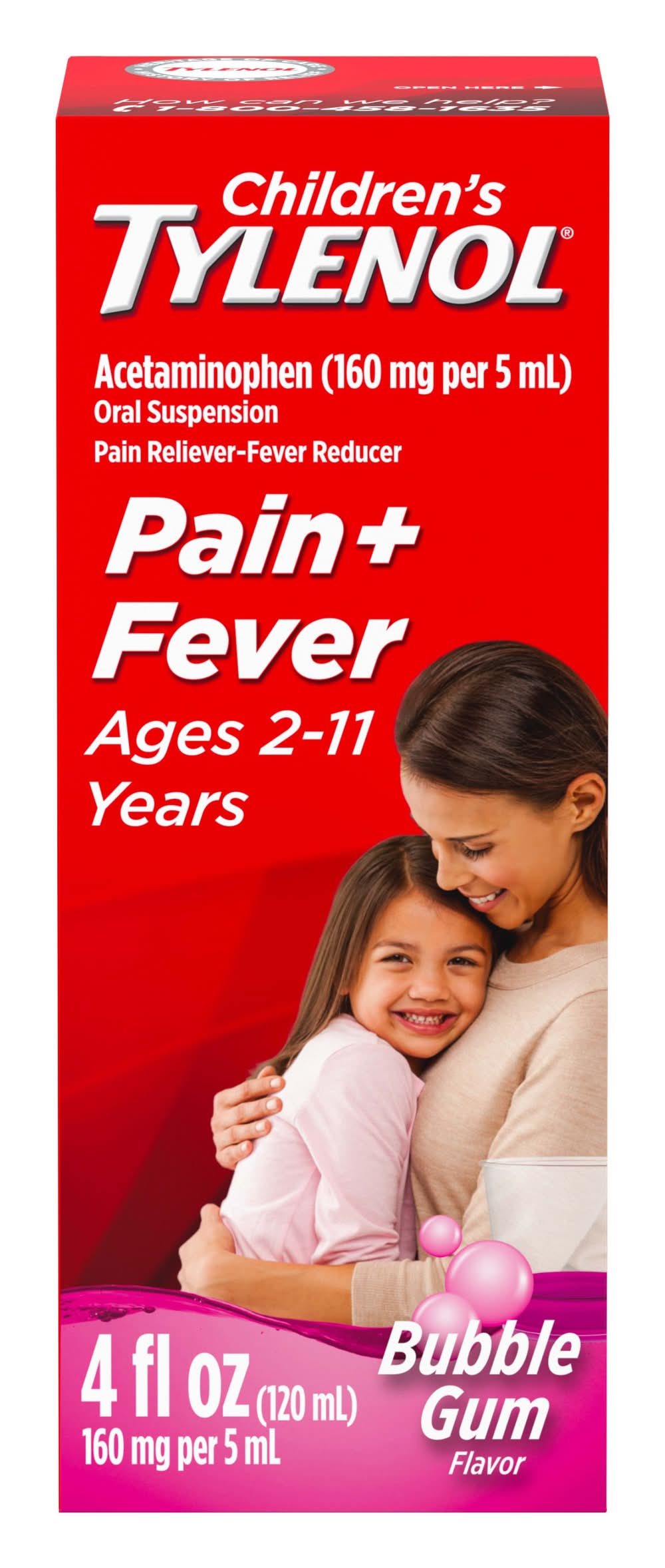 Tylenol Children's Pain & Fever Reducer Oral Suspension 2-11 Years, Bubble Gum (4 fl oz)