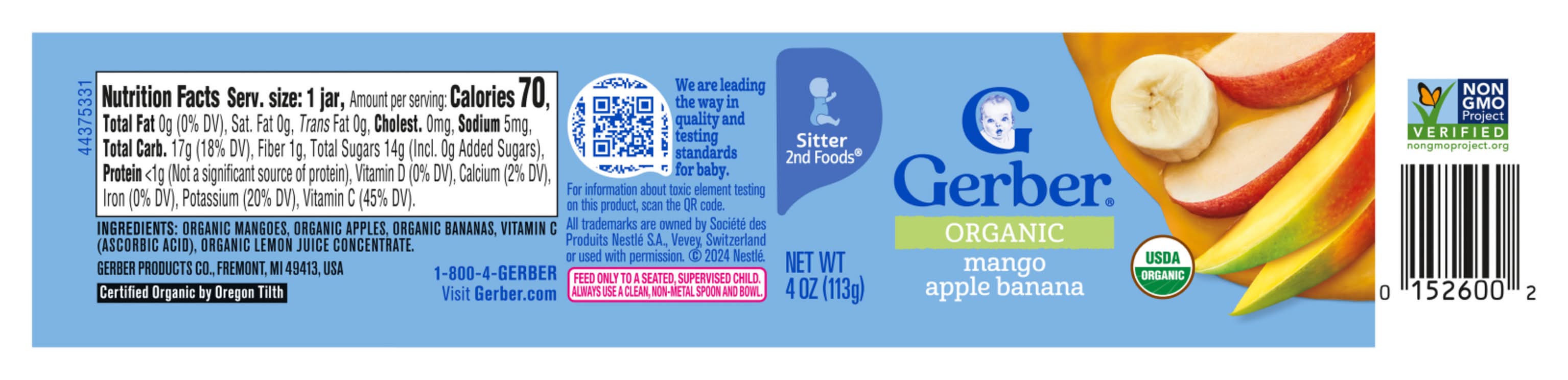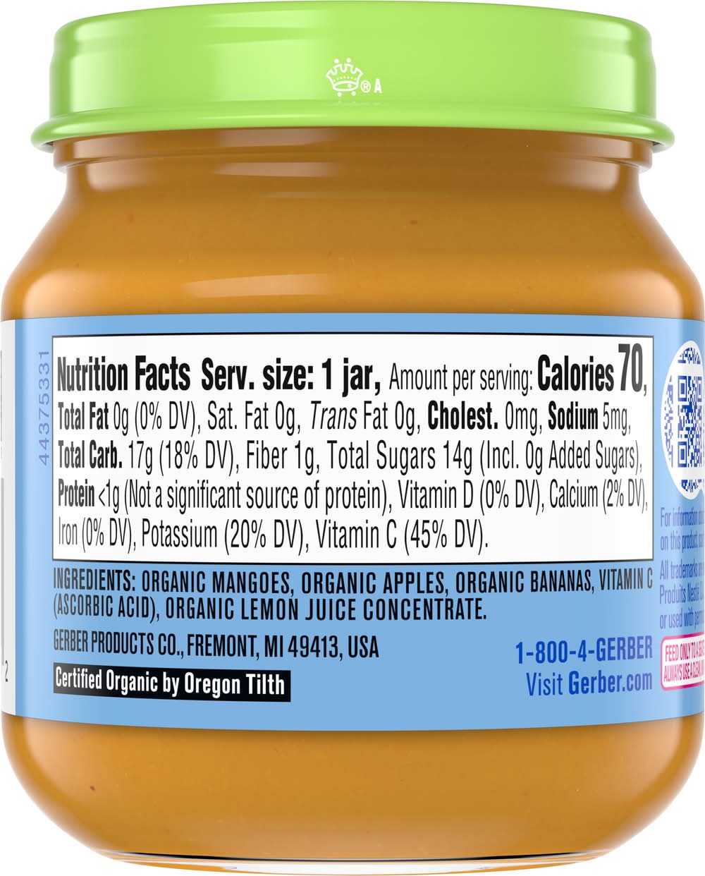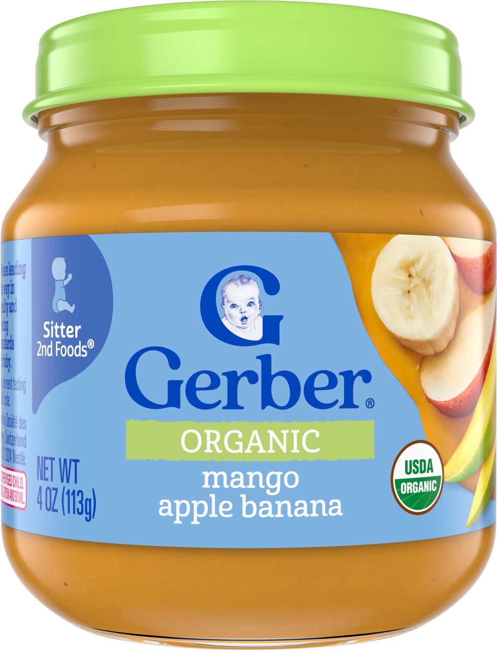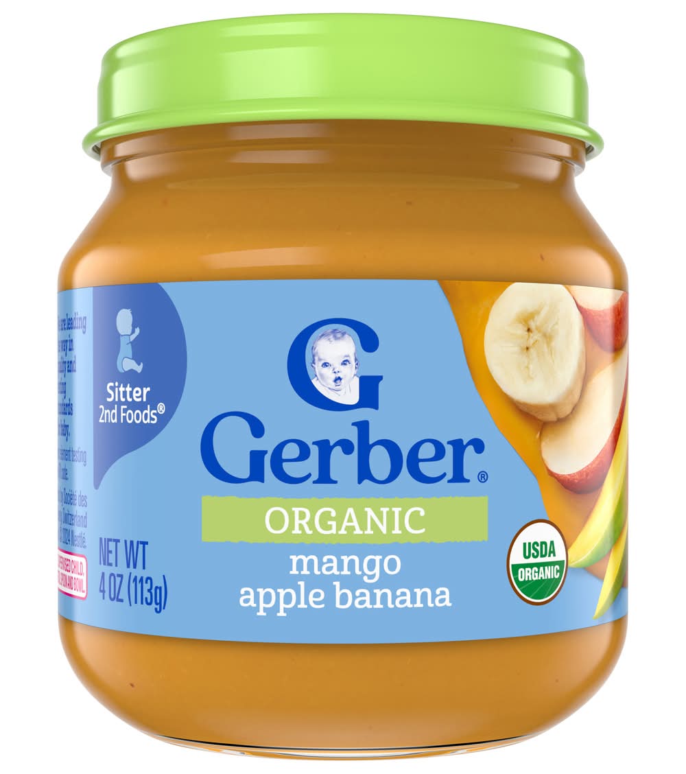 Gerber Organic Mango Apple Banana Puree, Sitter 2nd Foods (4 oz)