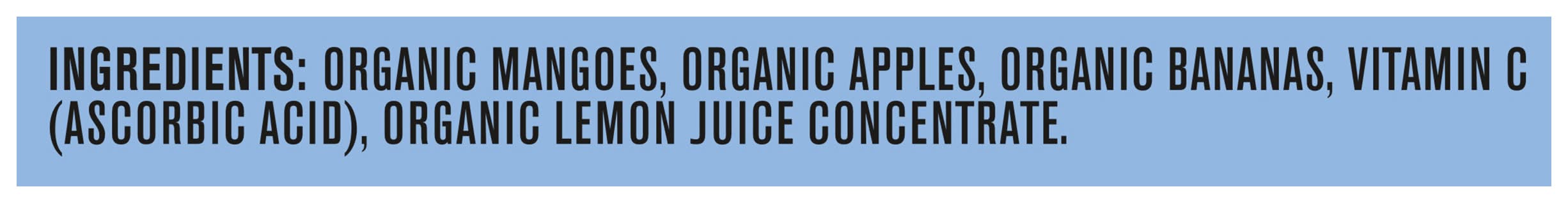 Ingredients: Organic Mangoes, Organic Apples, Organic Bananas, Vitamin C (Ascorbic Acid), Organic Lemon Juice Concentrate