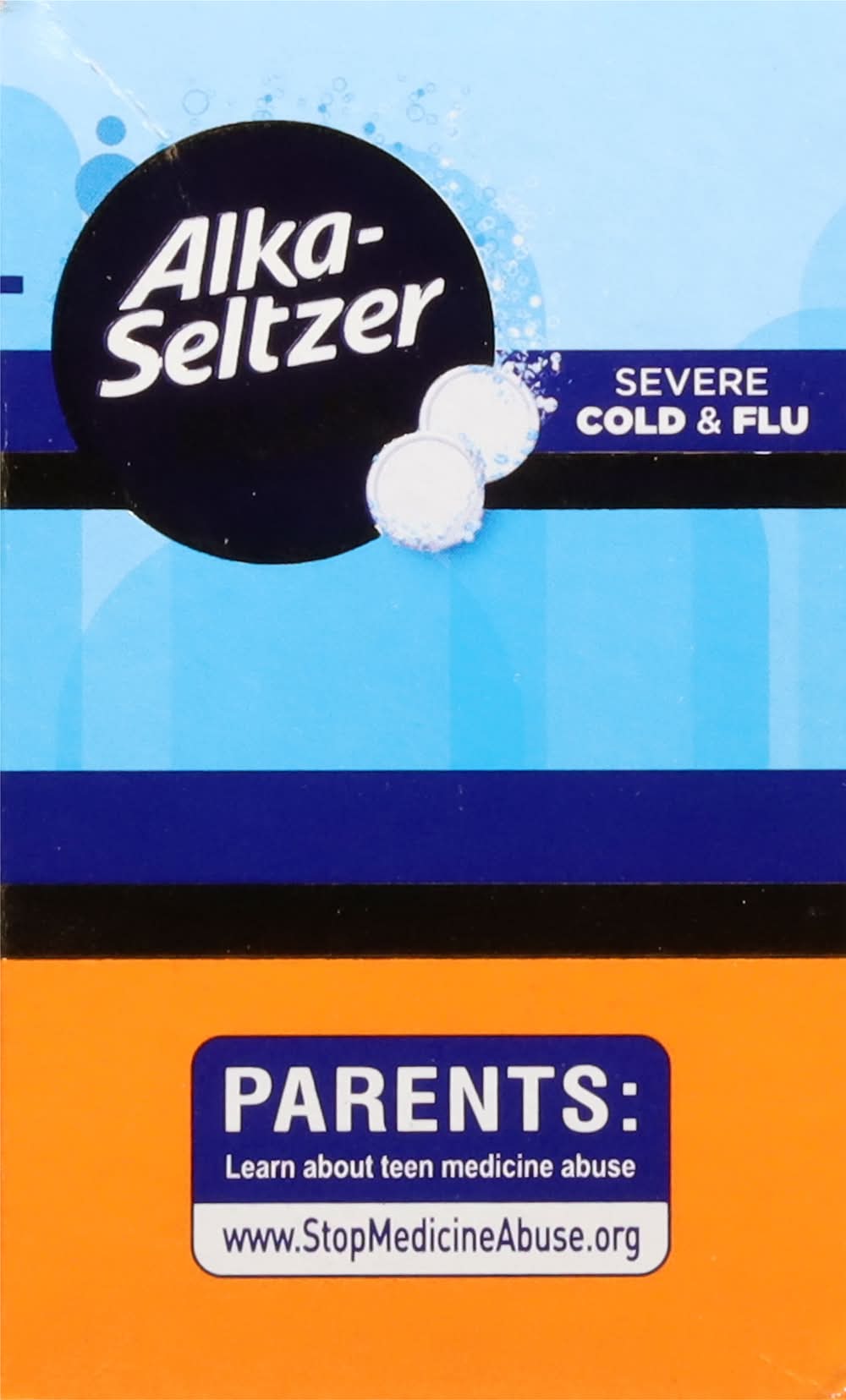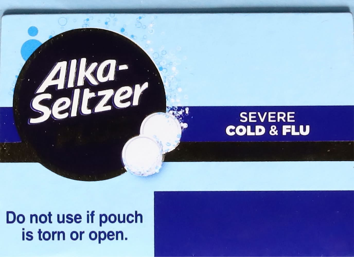 New & improved Alka-Seltzer Plus Cold & Flu Effervescent Tablets dissolve quickly in hydrating water and are instantly ready to start working. This formula has improved flavor, less sodium & is aspartame free. Each dose is individually wrapped and transforms in just 4oz of water into a liquid-fast medicine. After you drink the refreshing, sparkling solution, Alka-Seltzer Plus works quickly to relieve your worst cold symptoms: Nasal & Sinus Congestion, Sneezing, Runny Nose, Cough, Sore Throat, Fever, Headache and Body Aches & Pains. Our fantastic formula made even better: improved flavor, less sodium, & aspartame free. Our severe Cold & Flu medicine formula provides unbeatably liquid fast relief of headache, sore throat, cough, nasal & sinus congestion, runny nose, sneezing, aches & pains and fever. Quickly dissolves in water and instantly ready to start working so you can get back to your busy life. Packaging: Reusable