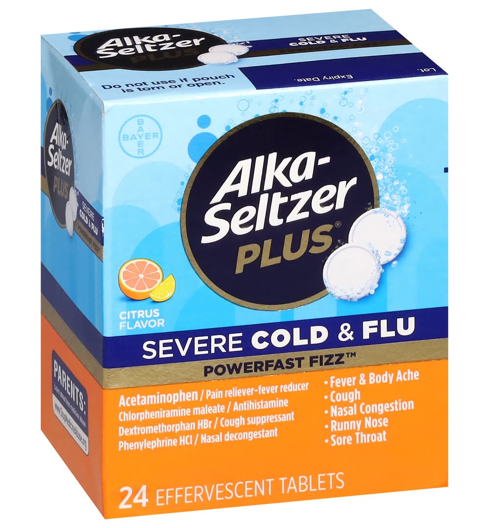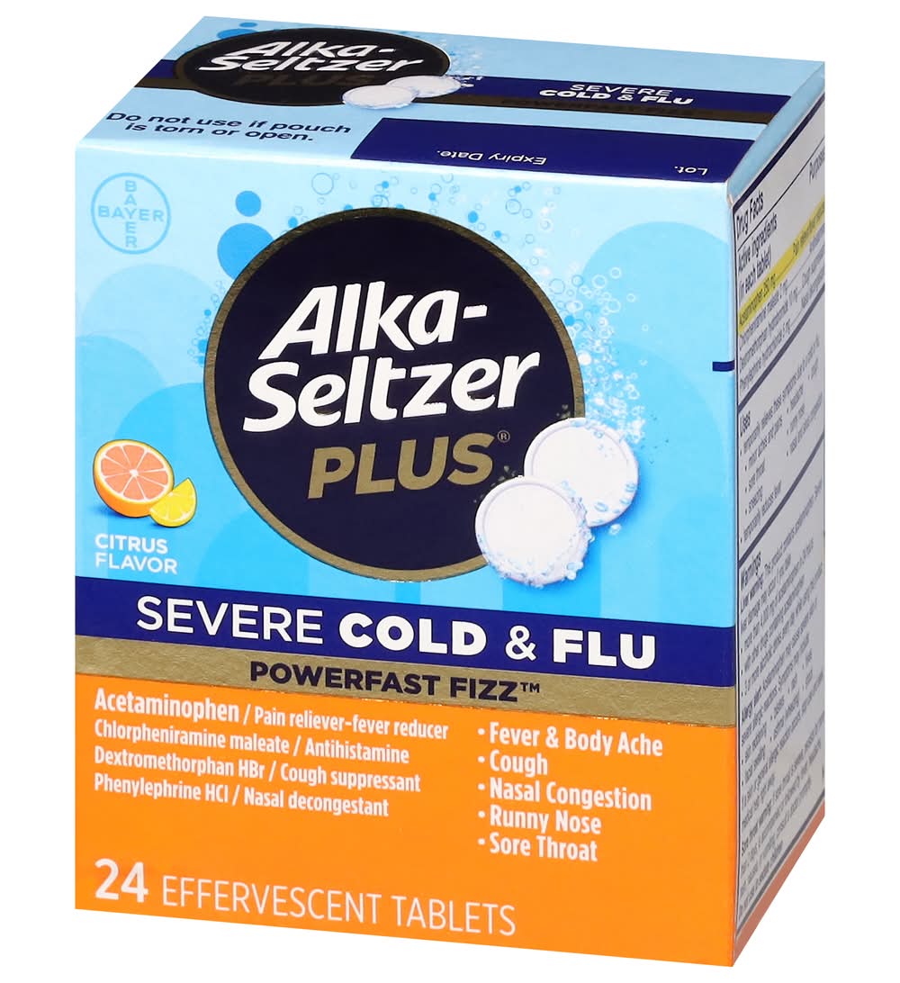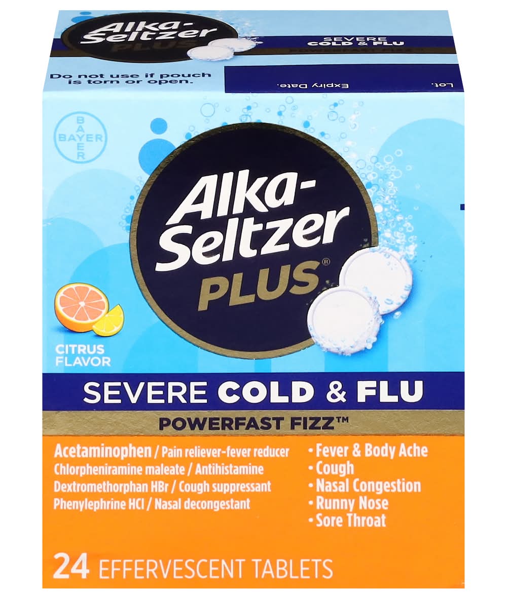 Alka-Seltzer Plus Powerfast Fizz Severe Cold & Flu Effervescent Tablets, Citrus (24 ct)